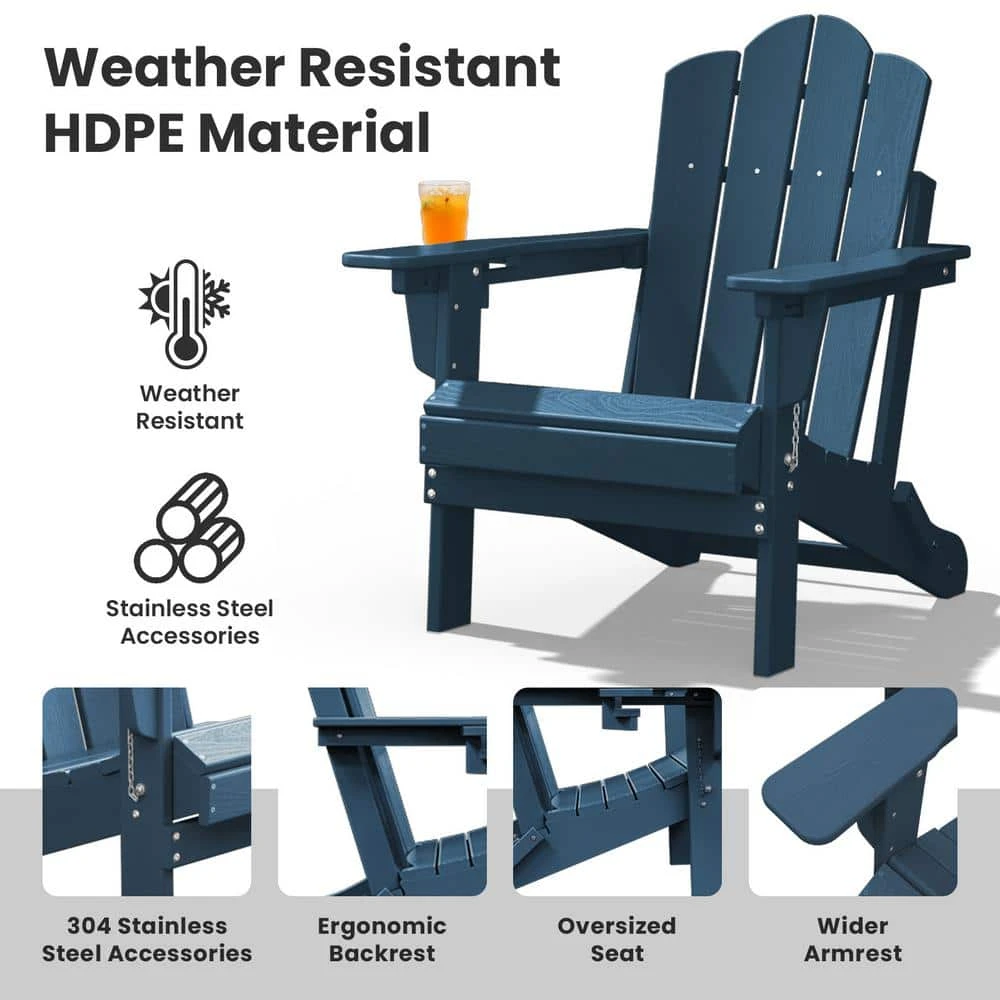 - Weatherproof and Fade-Proof: This Adirondack Chair will never fade, splinter, chip, peel, or rot when exposed to the elements.