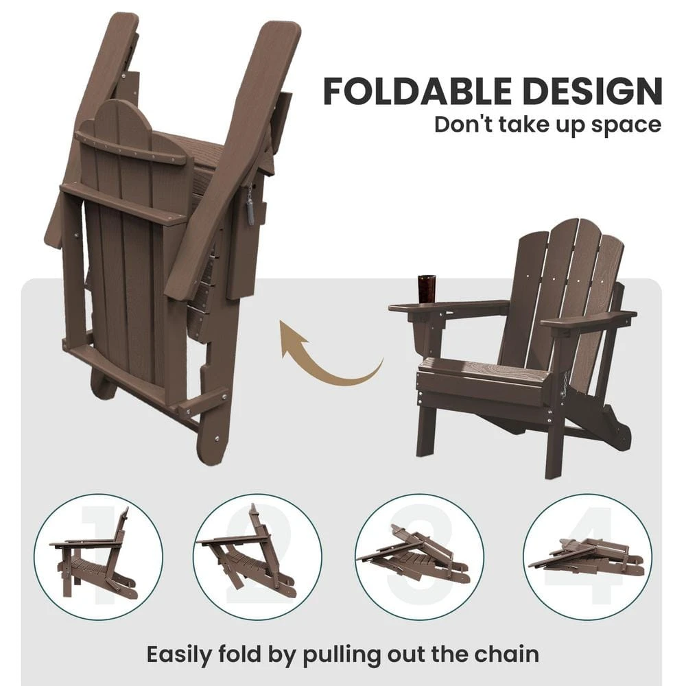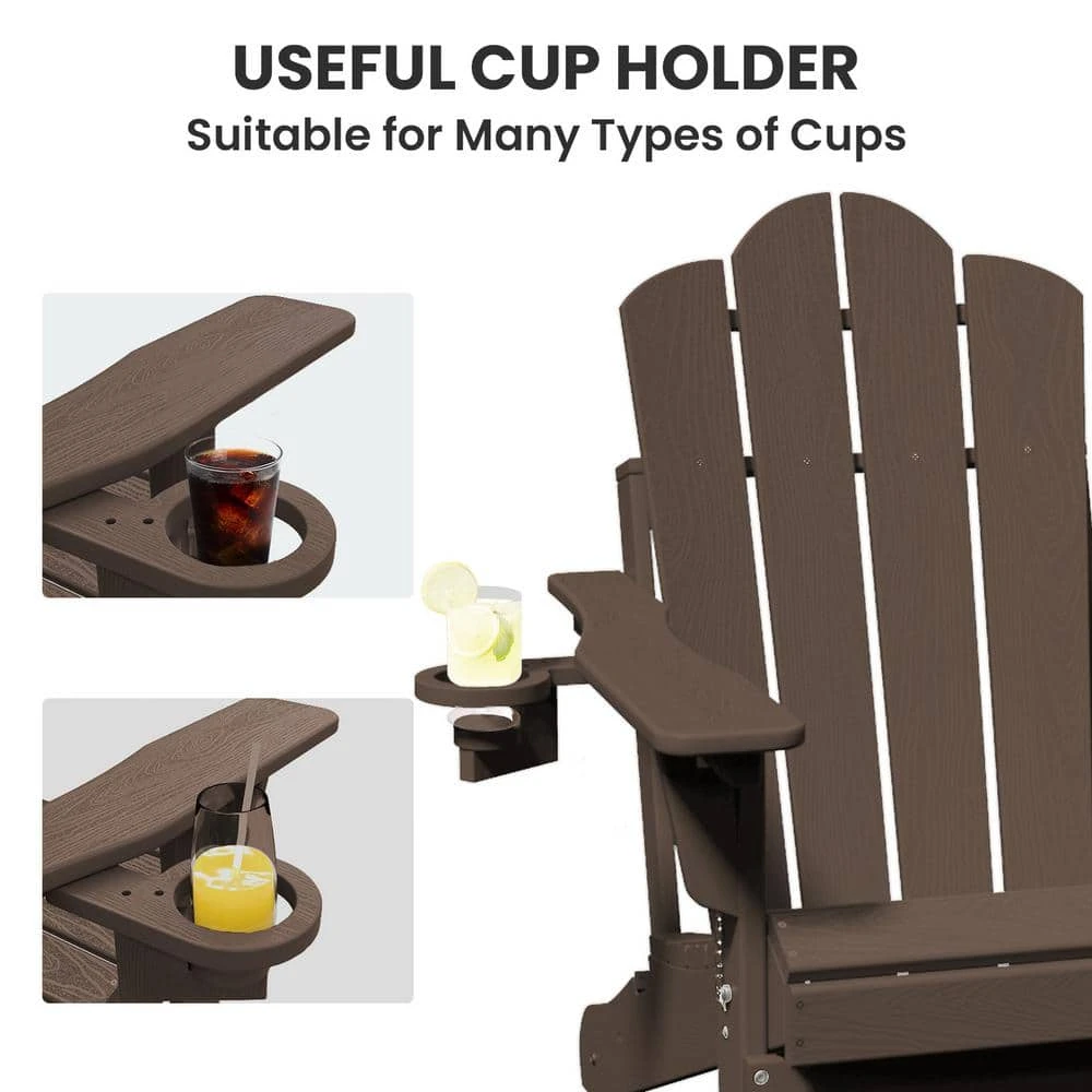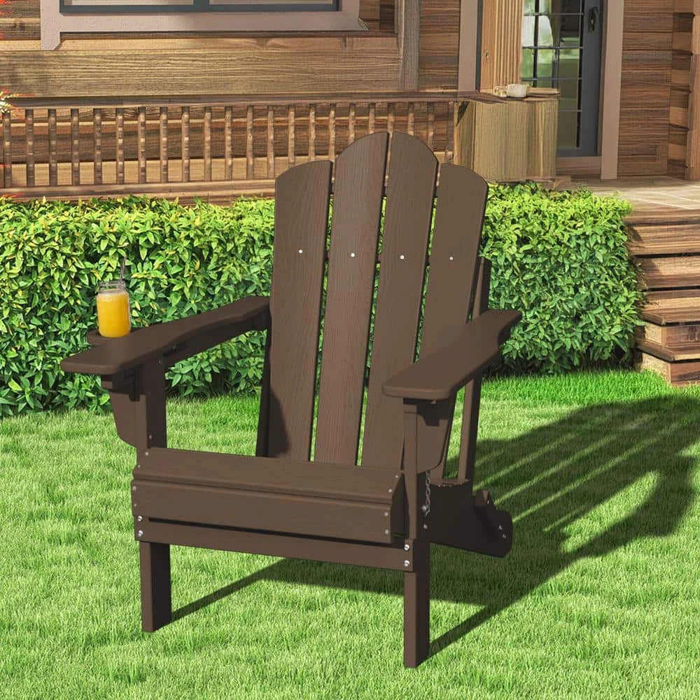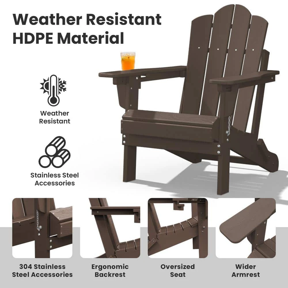 Our Adirondack Chair is built with High-Density Polyethylene (HDPE), which looks and feels like real wood while withstands all kinds of climates including hot sun, snowy winters, freezing rain, salt spray, and strong coastal winds. Meanwhile, it is waterproof and resistant to stains and corrosive substances, so it is very easy to clean. With a shell-shaped back style, this classic Adirondack is the perfect blend of style and comfort that will complement any outdoor space. If you are looking for a stylish outdoor chair with comfort, this will be the one you need. The retro surface and classic shape of the chair are the perfect choices for your decoration. The waterproof and folding functional attributes protect the product itself and last the use time limit. The curved seat conforms to ergonomics and maximizes comfort for the user. Sit back and soak up the sun to enjoy the outdoors with this amazing chair!