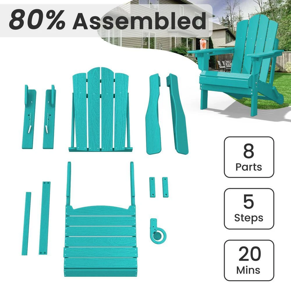 1-Piece HDPE Folding Adjustable Adirondack Chair In Tiffany Blue