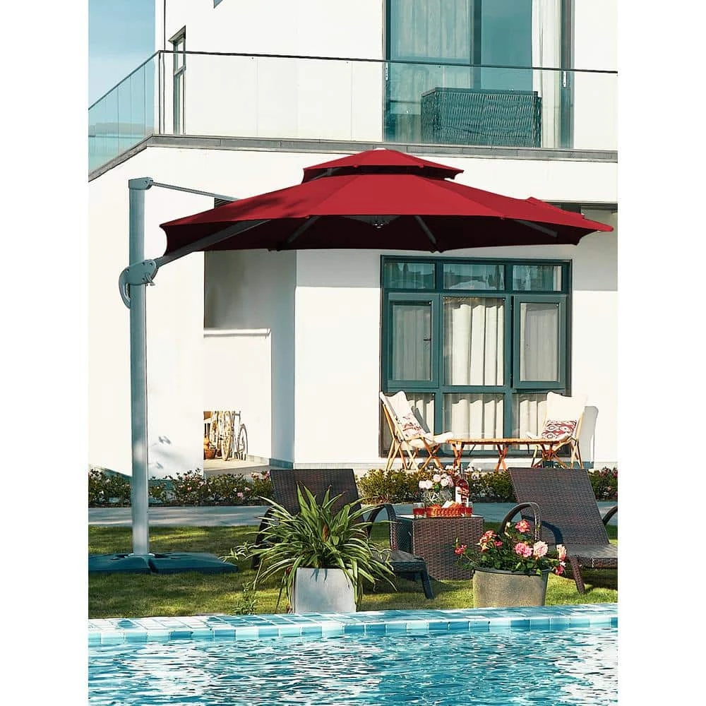 10 Ft. Aluminum Cantilever Umbrella With Cover In Red