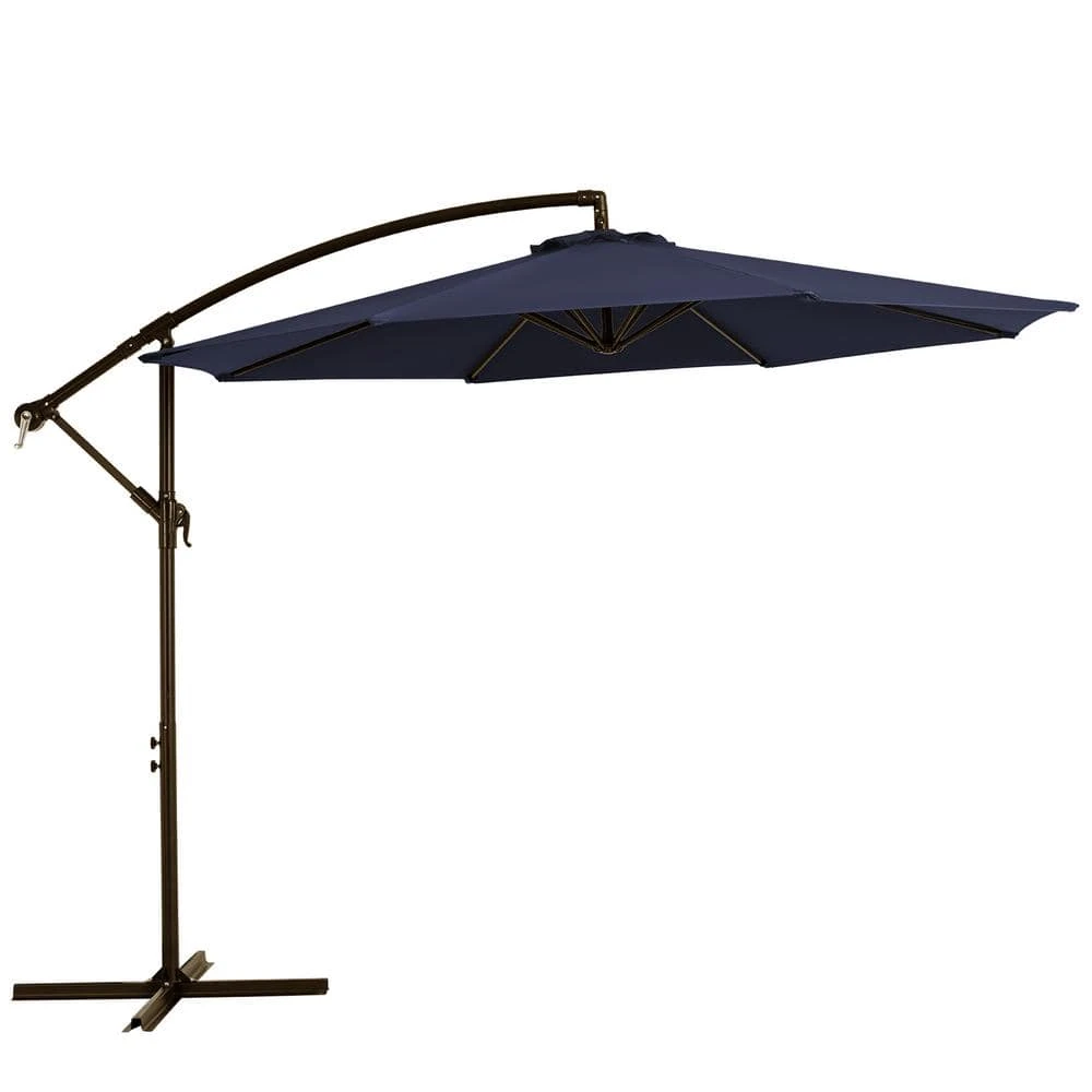 Provide style and shade for your outdoor living space with this offset cantilever patio umbrella. Constructed of waterproof 180 GSM polyester fabric, the umbrella canopy is designed to be durable to hold up to the elements. Use solution-dyed fabric with a UV Resistant coating to increase UV protection which can protect your skin and helps to ensure minimal fading when in direct Sunlight. The steel base and Aluminum pole provide a strong frame for this umbrella. It is easy to set up and adjust with the cantilever and crank. This umbrella will be the perfect addition to the patio, deck, backyard and anywhere else you want to stay cool while outdoors. This umbrella just has the cross base, if you need the weighted base, please search by this OMSID: 320782960.