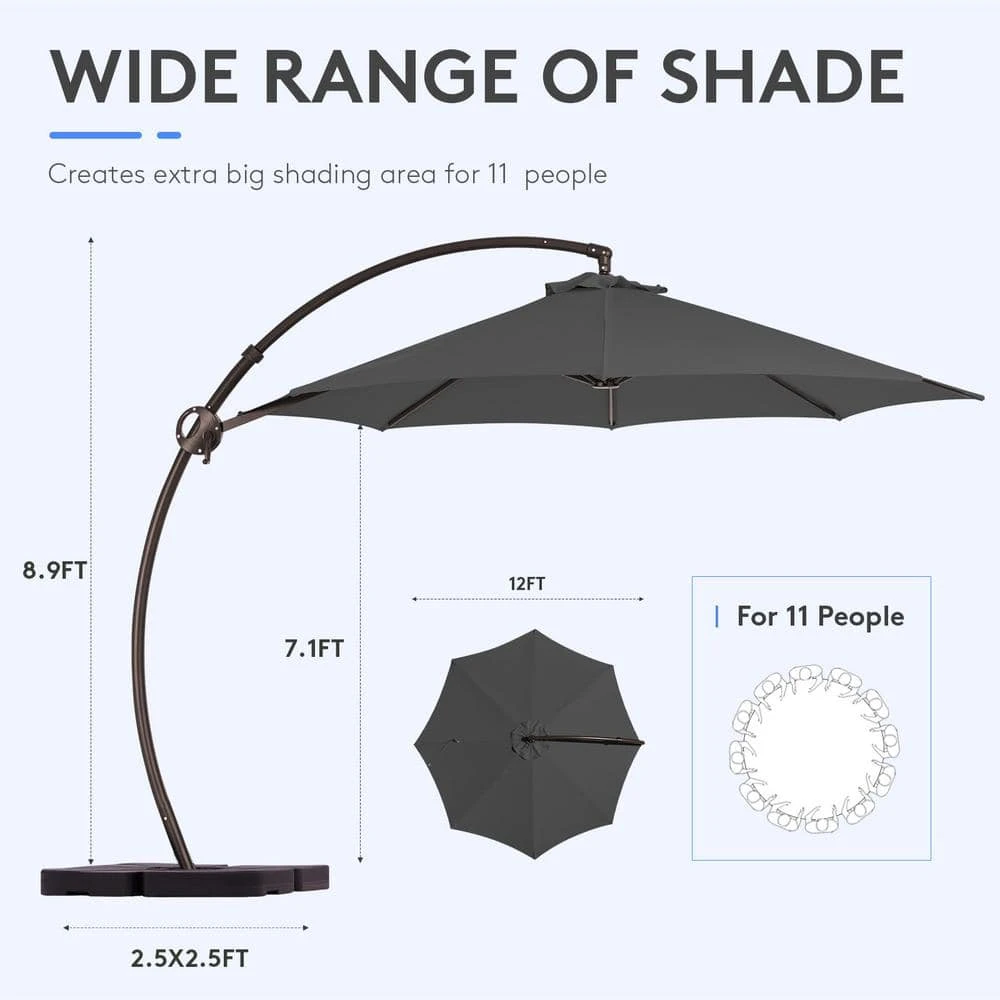 - Multiple scenes- this curvy patio cantilever umbrella can be widely used in outdoor, commercial, market, garden, pool, deck, lawn, backyard and restaurant, etc.