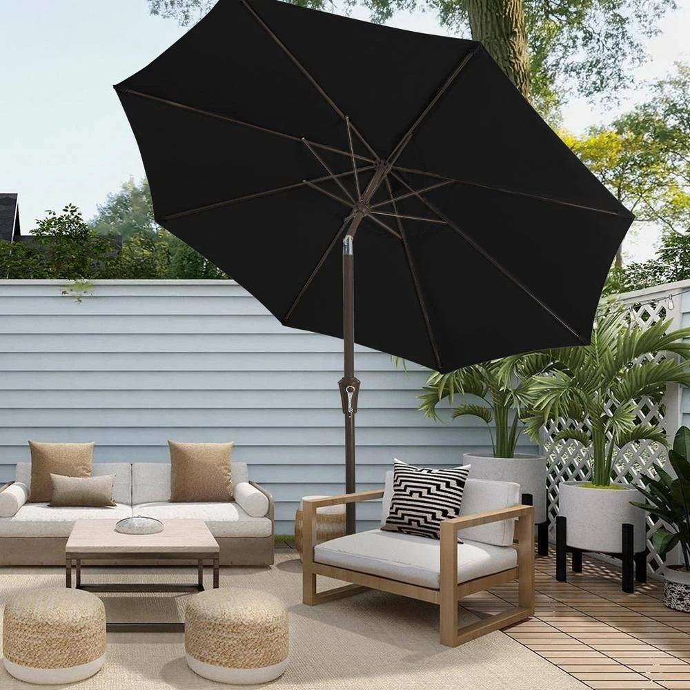 10 Ft. Market Patio Umbrella With Push Button Tilt And Crank In Black