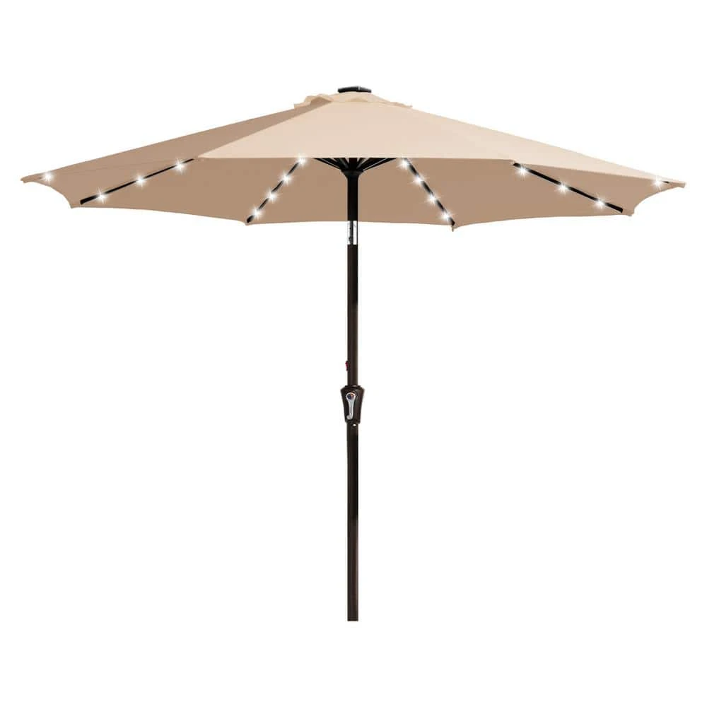 Enhance your outdoor living experience with the versatile and stylish Market Tilt Patio Umbrella. The umbrella features energy-efficient LED lights built into the ribs of the canopy, powered by a solar panel on top. The solar panel charges during the day to provide ambient lighting in the evening, allowing you to enjoy your outdoor space longer. This umbrella is designed to provide ample shade and comfort, making it a perfect addition to any patio, garden, deck, or poolside area.