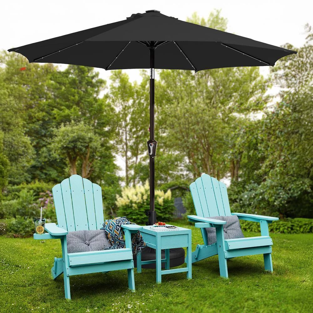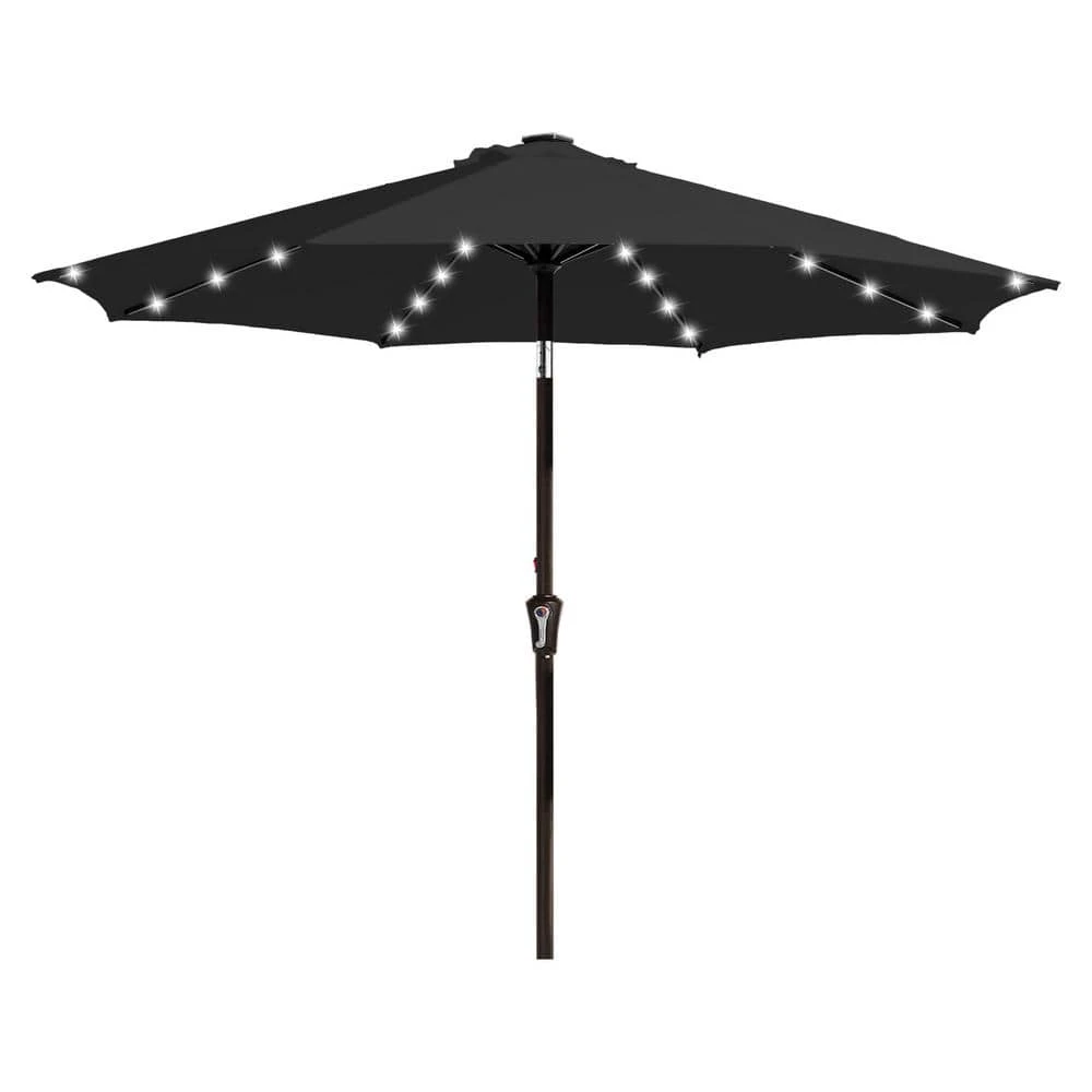 10 Ft. Market Solar LED Lighted Tilt Patio Umbrella Outdoor Steel Umbrella In Black