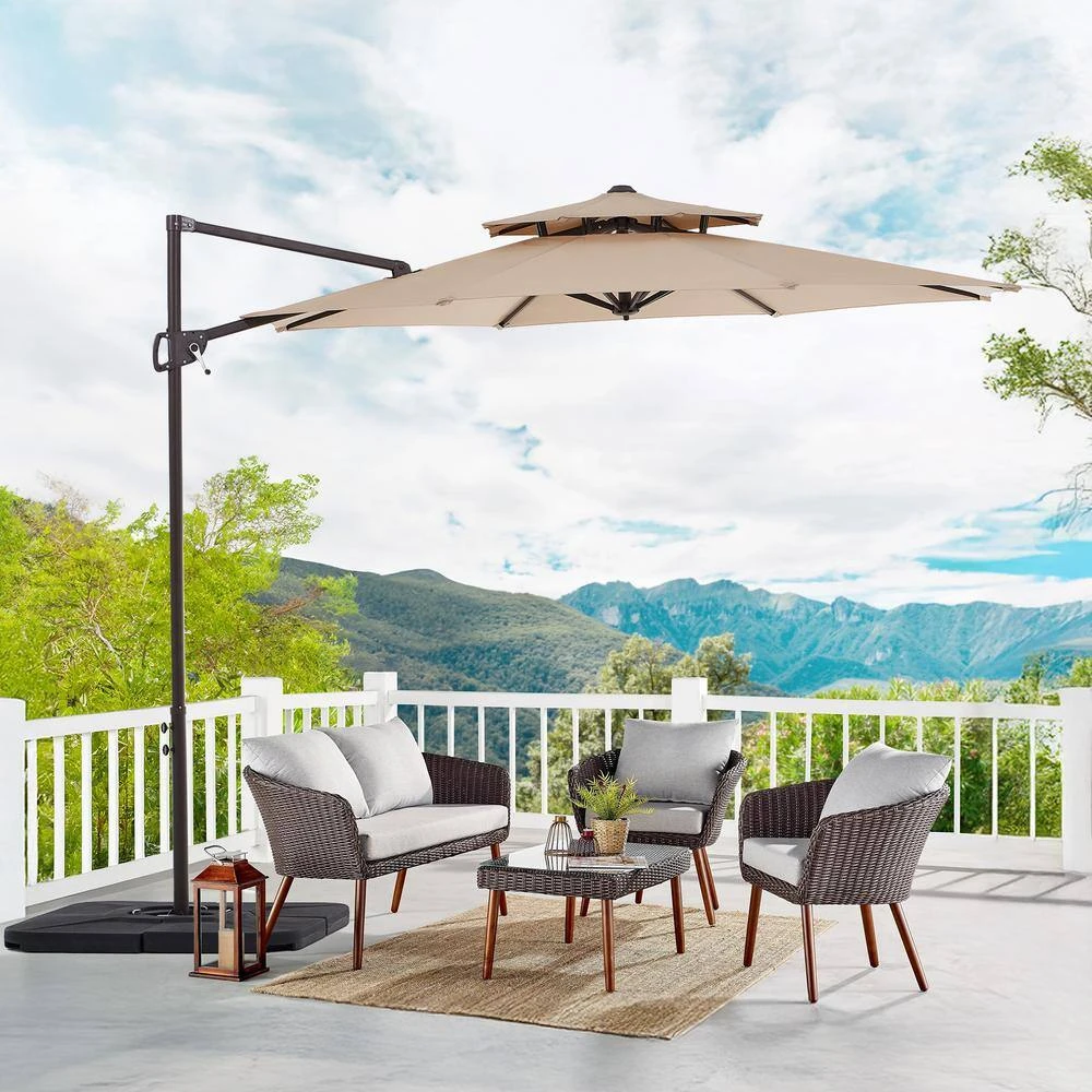 10 Ft. Outdoor Patio Cantilever Umbrella With Tilt In Beige