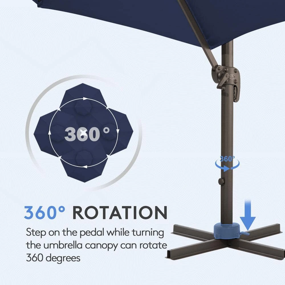 - Featuring a unique 360° rotation mechanism, you can effortlessly adjust the umbrella to cover any area without needing to move the base