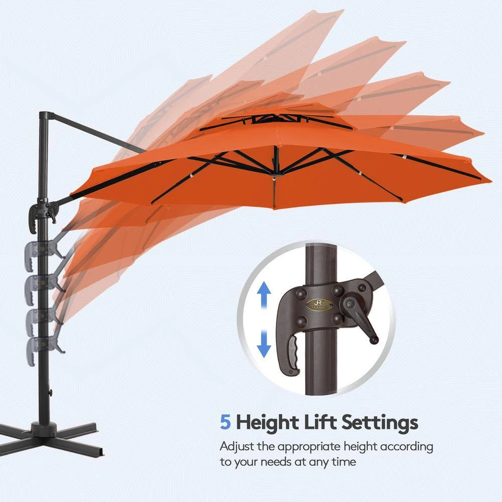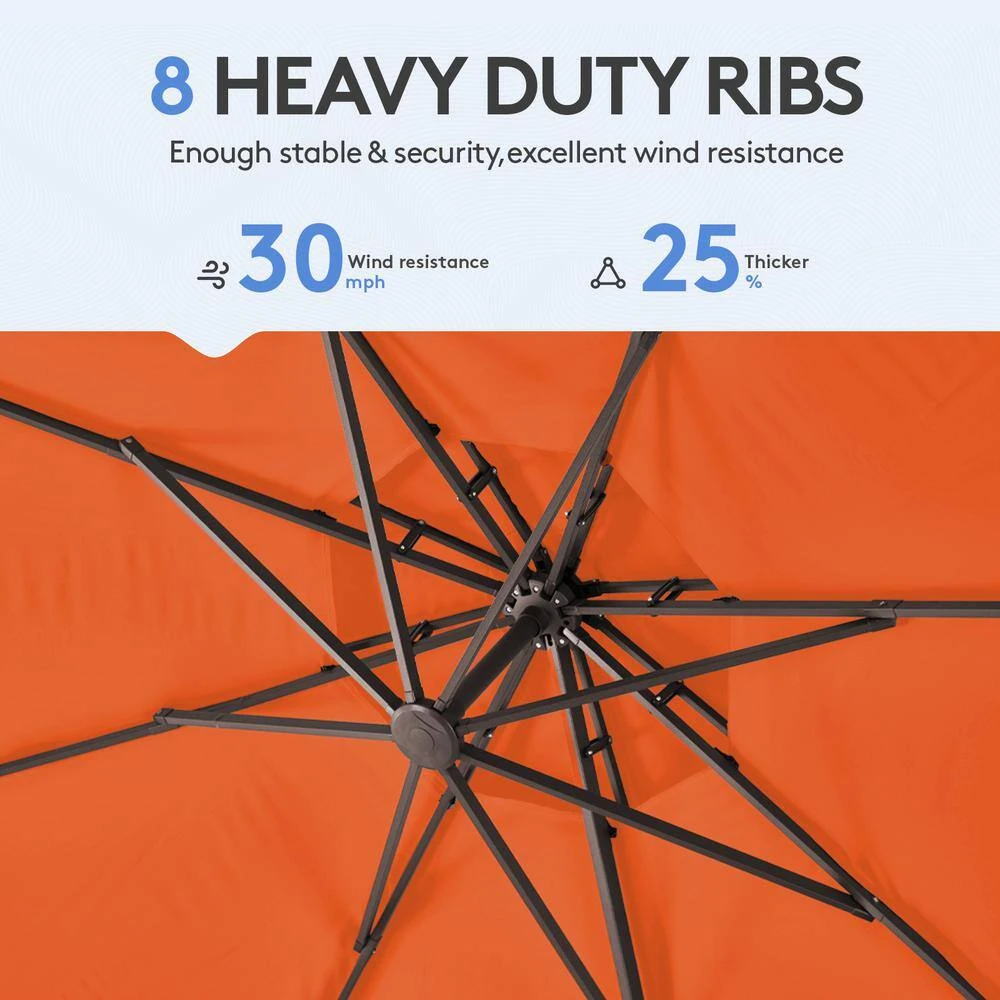 Relax outside day or night with our durable and chic 10 ft. cantilever patio umbrella. While the weather-resistant canopy protects you from the sun’s heat and harmful rays. Our umbrella can provide shade for a round or rectangle table with up to 9 chairs. You can use it in residential and commercial locations, e.g. gardens, yards, pool, deck, background beach, balcony, restaurant, and other outdoor areas. CAUTION and CARE – To make this type of umbrella stable, you must purchase a weighted base separately, use a sandbag or bricks, or nail the foundation to your deck. NOTE – The weighted base is not included in this item. We Highly Recommend you can search these OMSIDs to match it: 328563934