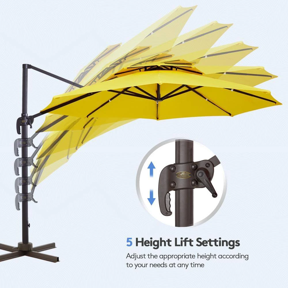 - Brand crank and lift system – this all-aluminum pool umbrella comes with a unique crank system, 5 heights and angles are available, just slide the crank to easily move the height to help you shade from multiple angles