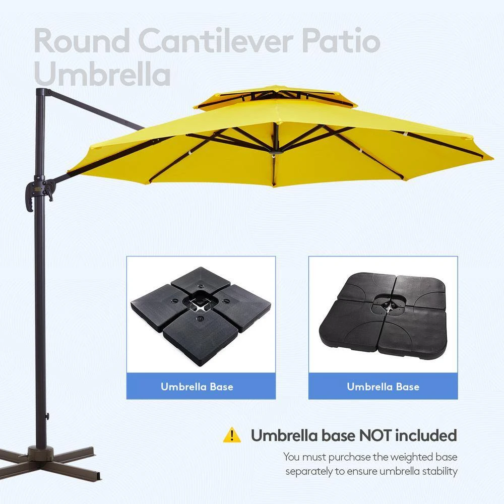 Relax outside day or night with our durable and chic 10 ft. cantilever patio umbrella. While the weather-resistant canopy protects you from the sun’s heat and harmful rays. Our umbrella can provide shade for a round or rectangle table with up to 9 chairs. You can use it in residential and commercial locations, e.g. gardens, yards, pool, deck, background beach, balcony, restaurant, and other outdoor areas. CAUTION and CARE – To make this type of umbrella stable, you must purchase a weighted base separately, use a sandbag or bricks, or nail the foundation to your deck. NOTE – The weighted base is not included in this item. We Highly Recommend you can search these OMSIDs to match it: 328563934