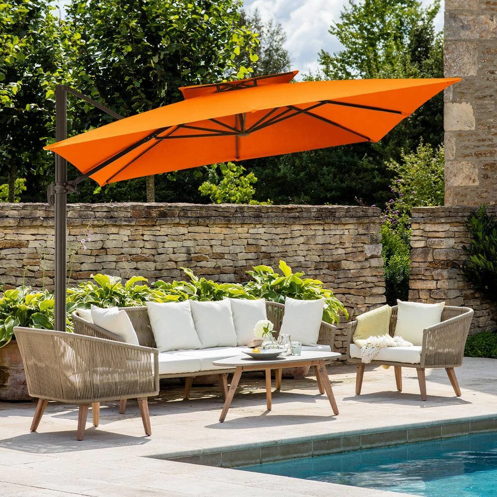 10 Ft. Square Cantilever Umbrella Patio Rotation Outdoor Umbrella With Cover In Orange