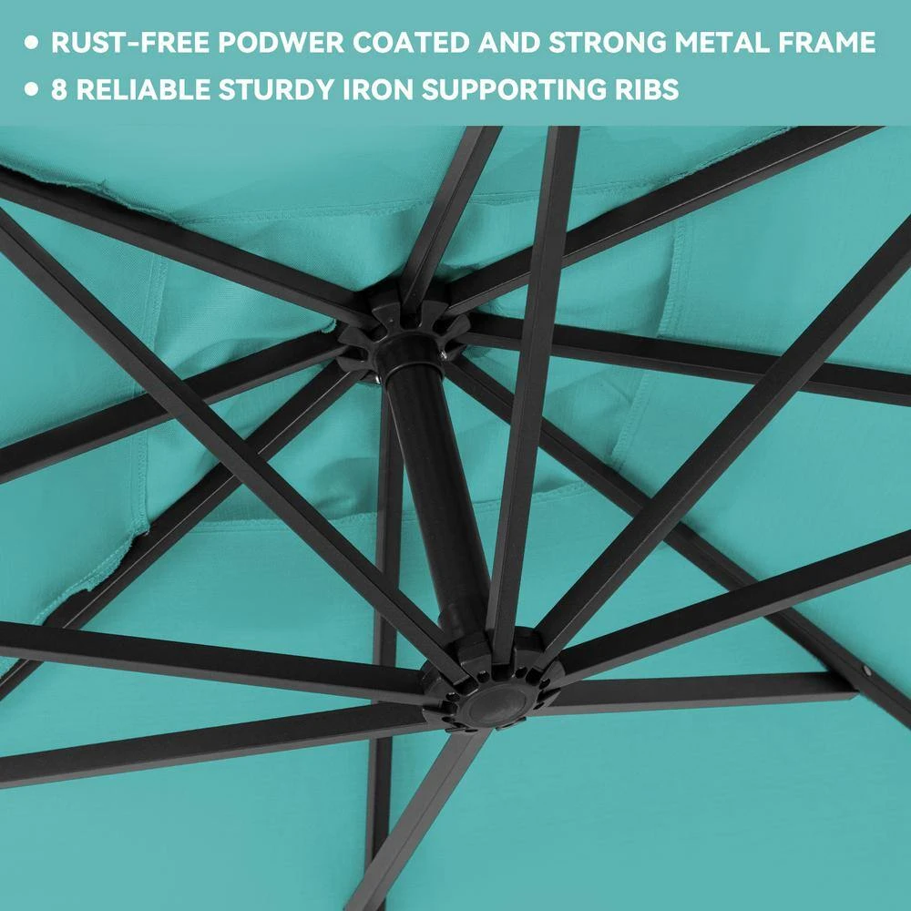 Get a new cantilever umbrella for your backyard or garden now. A wonderful solution for any leisure time outside under bright Sunshine. Even this umbrella can be used for commercial use, but outside of your store for those customers who want to sit outside the room. Please Note: Stand included, counterweight included as well(need to fill by yourself).