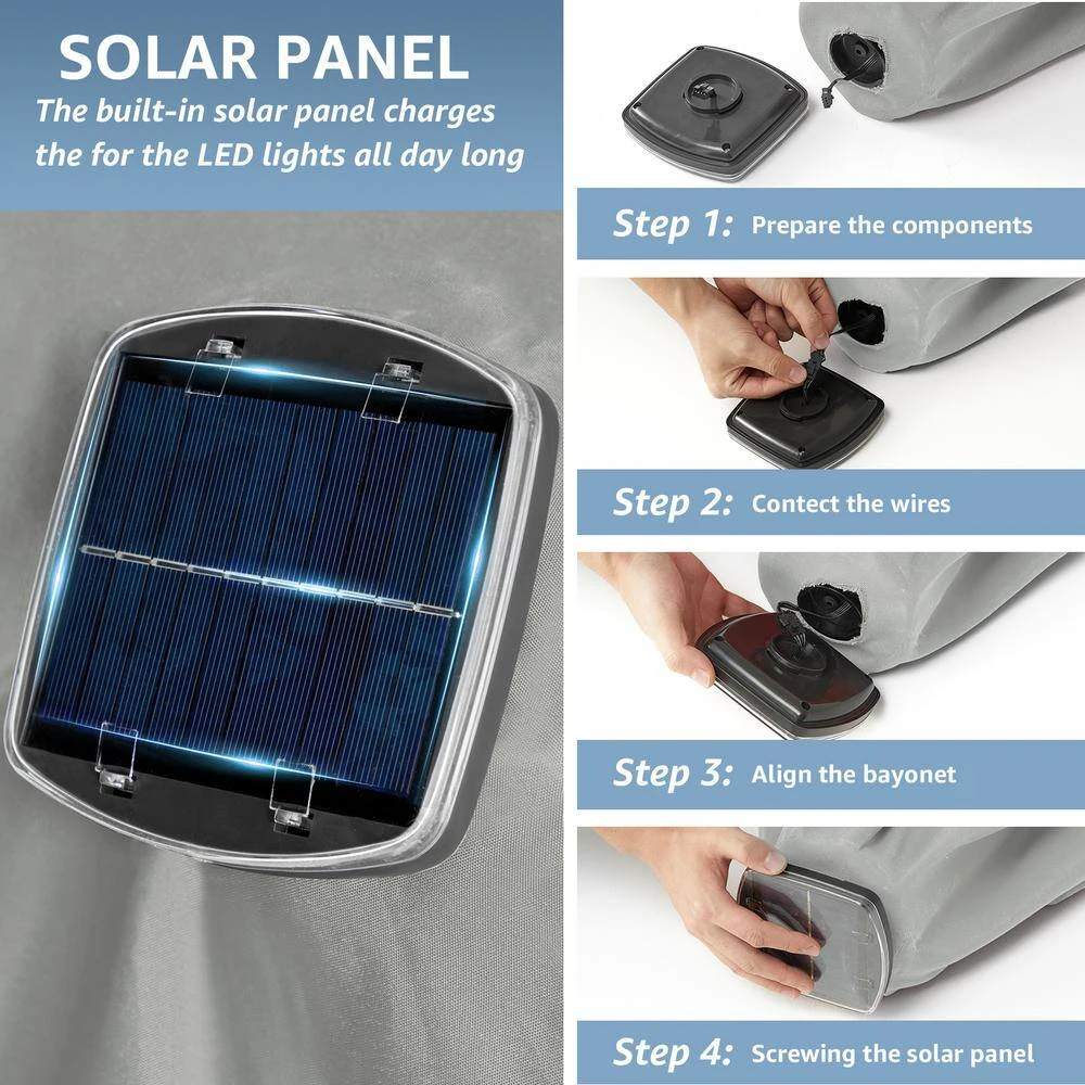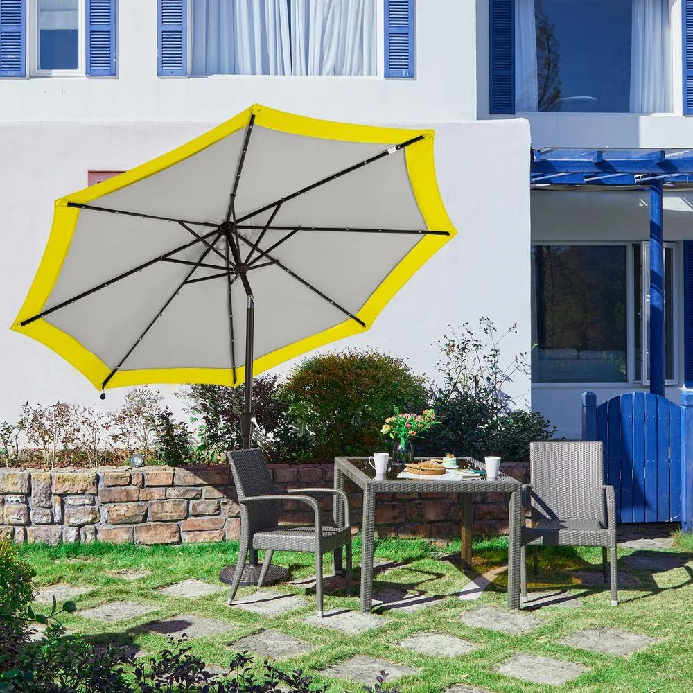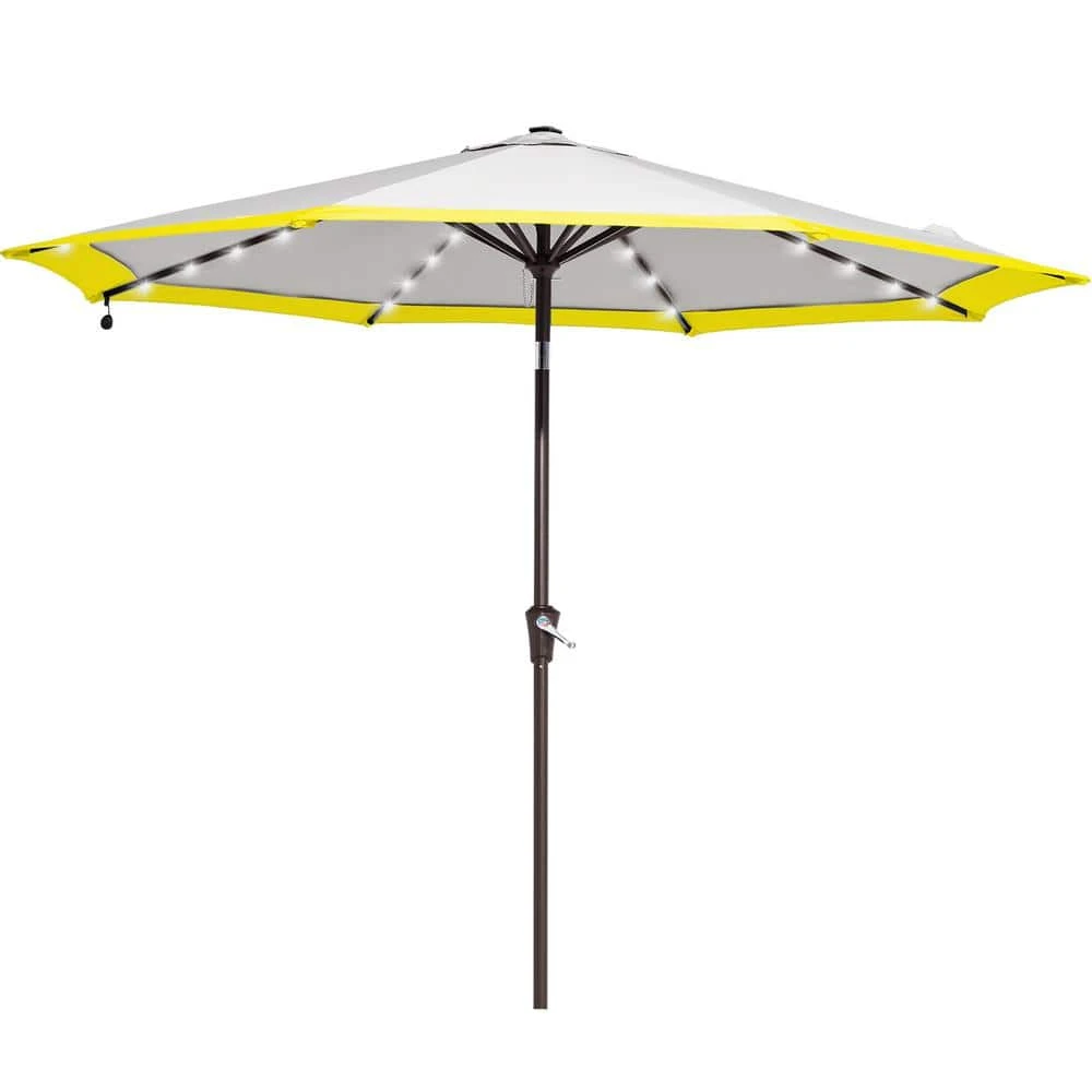 10 Ft. Steel Lighted Market Tilt Solar Umbrella With Crank In Gray And Yellow Splicing