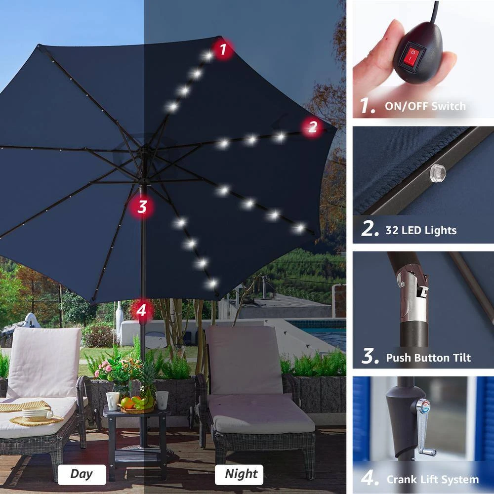 - Easy tilt and crank operation – the lighted umbrella has an easy push-summary to tilt, it also has a smooth-action crank that makes opening and closing the umbrella simple