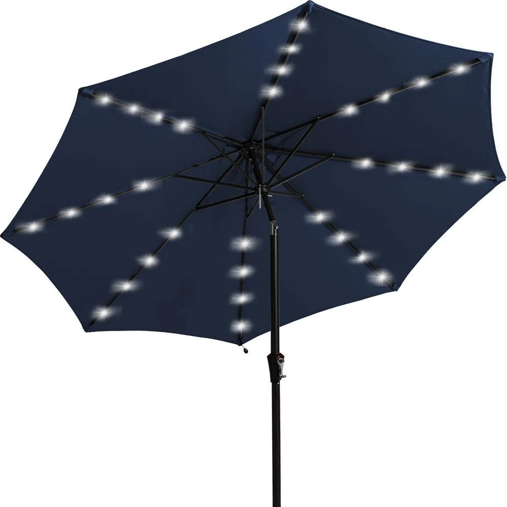 10 Ft. Steel Outdoor Patio Market Umbrella With Lights In Navy