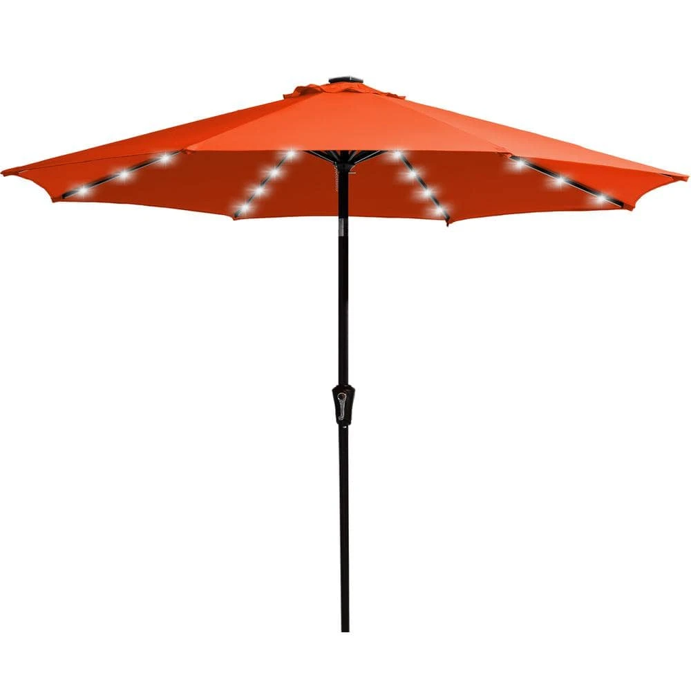 10 Ft. Steel Outdoor Patio Market Umbrella With Lights In Orange