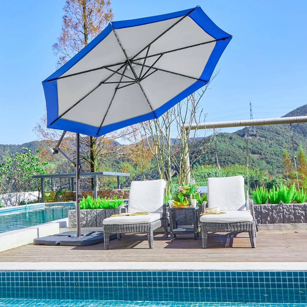 10 Ft. Steel Solar Lighted Cantilever Patio Umbrellas With Sandbag Weighted Base In Gray And Blue Splicing