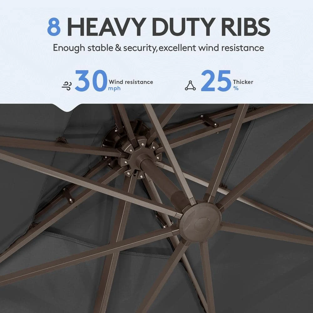 - Superior flexibility and 360° rotation: the advanced cantilever design includes an easy-to-use crank handle and tilt mechanism, allowing for effortless adjustment of the canopy angle, the umbrella also boasts a full 360° rotation, ensuring you can always find the perfect shade, no matter the sun’s position