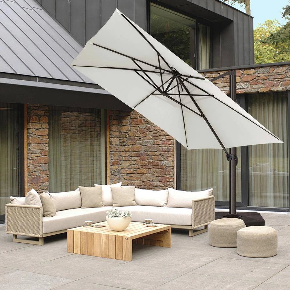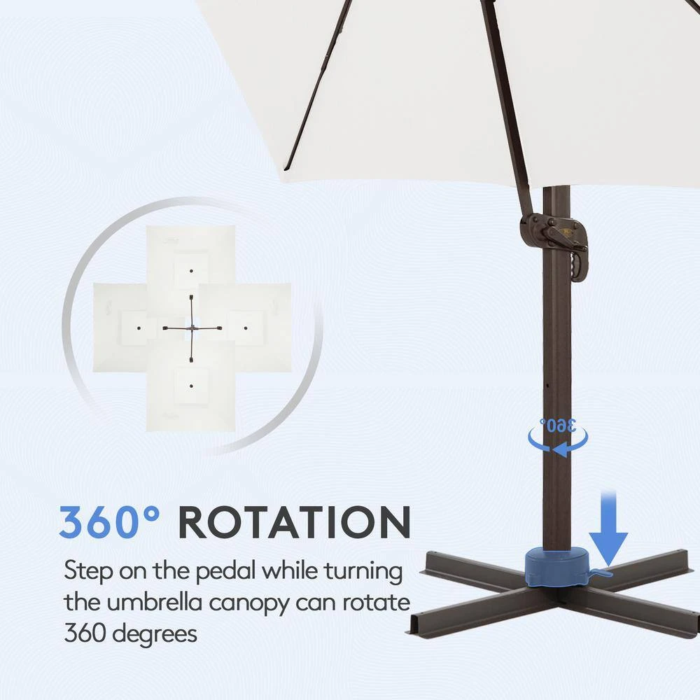 - Superior flexibility and 360° rotation: the advanced cantilever design includes an easy-to-use crank handle and tilt mechanism, allowing for effortless adjustment of the canopy angle, the umbrella also boasts a full 360° rotation, ensuring you can always find the perfect shade, no matter the sun’s position