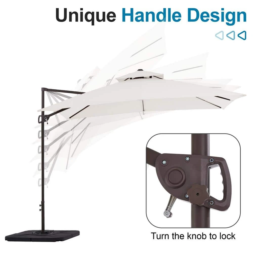 - Ideal for a variety of outdoor settings: perfect for patios, gardens, restaurants, pool areas, and other outdoor environments, the 10 ft. x 10 ft. square patio cantilever umbrella provides versatile and reliable shading solutions