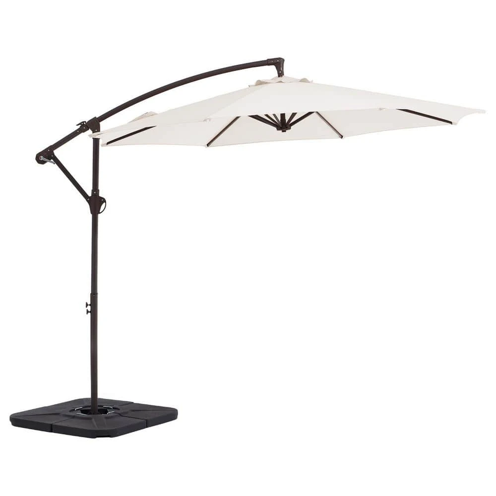 This offset umbrella features a powder-coated aluminum pole and 8 strong steel ribs in a bronze finish and a premium outdoor rated solution-dyed polyester shade canopy. This umbrella tilts front to back via crank-lift, so you can always stay cool in its shade. It is also 360° rotation by stepping on the foot pedal and twisting the pole. This cantilever umbrella can be used in so many places: patio, balcony, garden, deck, yard, restaurant patio, business outdoor break areas, etc.