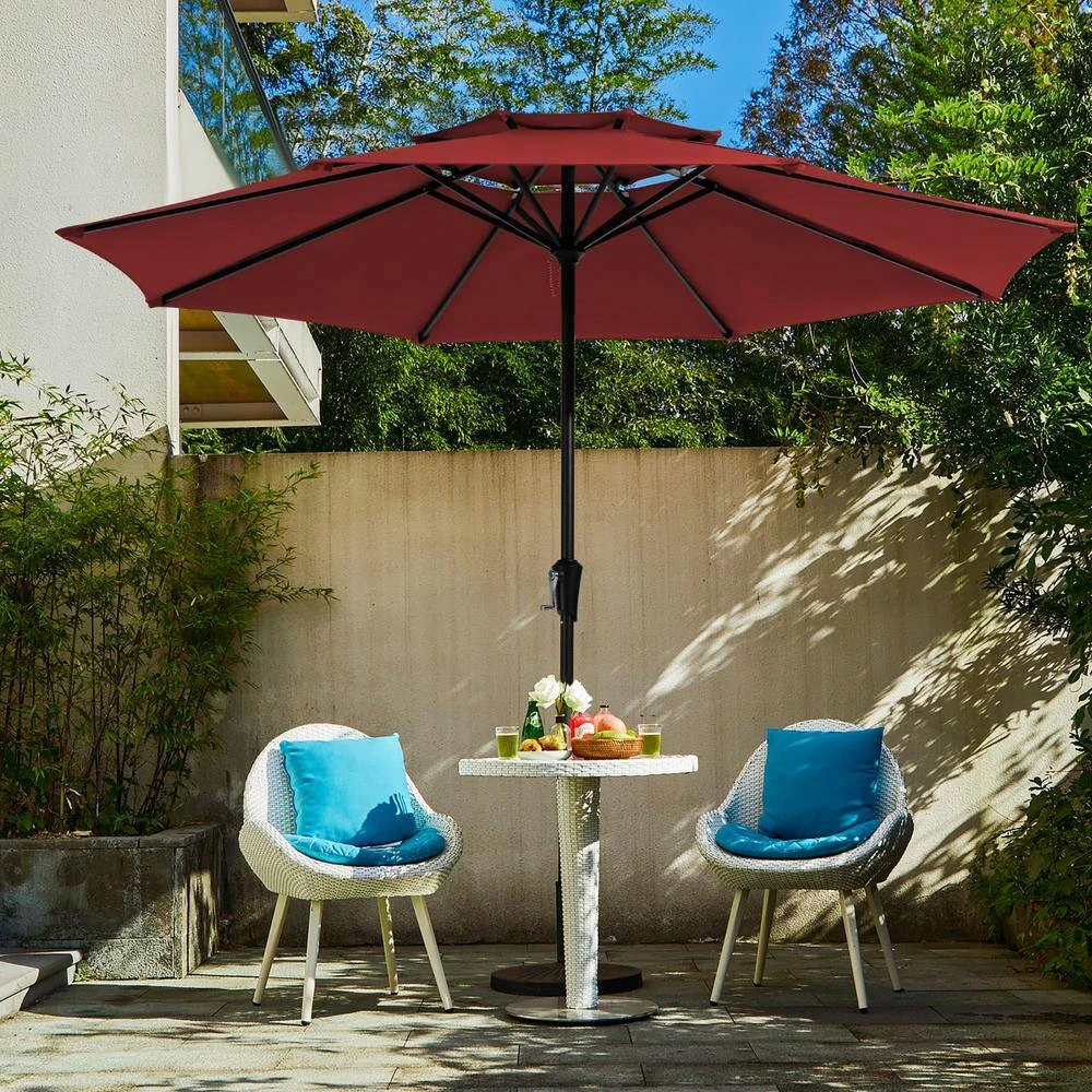 11 Ft. 2 -Tiers 8 Sturdy Ribs Outdoor Market Patio Umbrellas With Crank Lift In Red