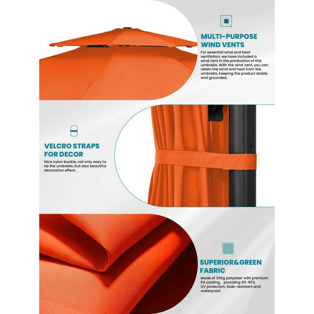 - Sturdy Frame: Aluminum pole and 8 ribs support this offset umbrella and provide superior strength and durability