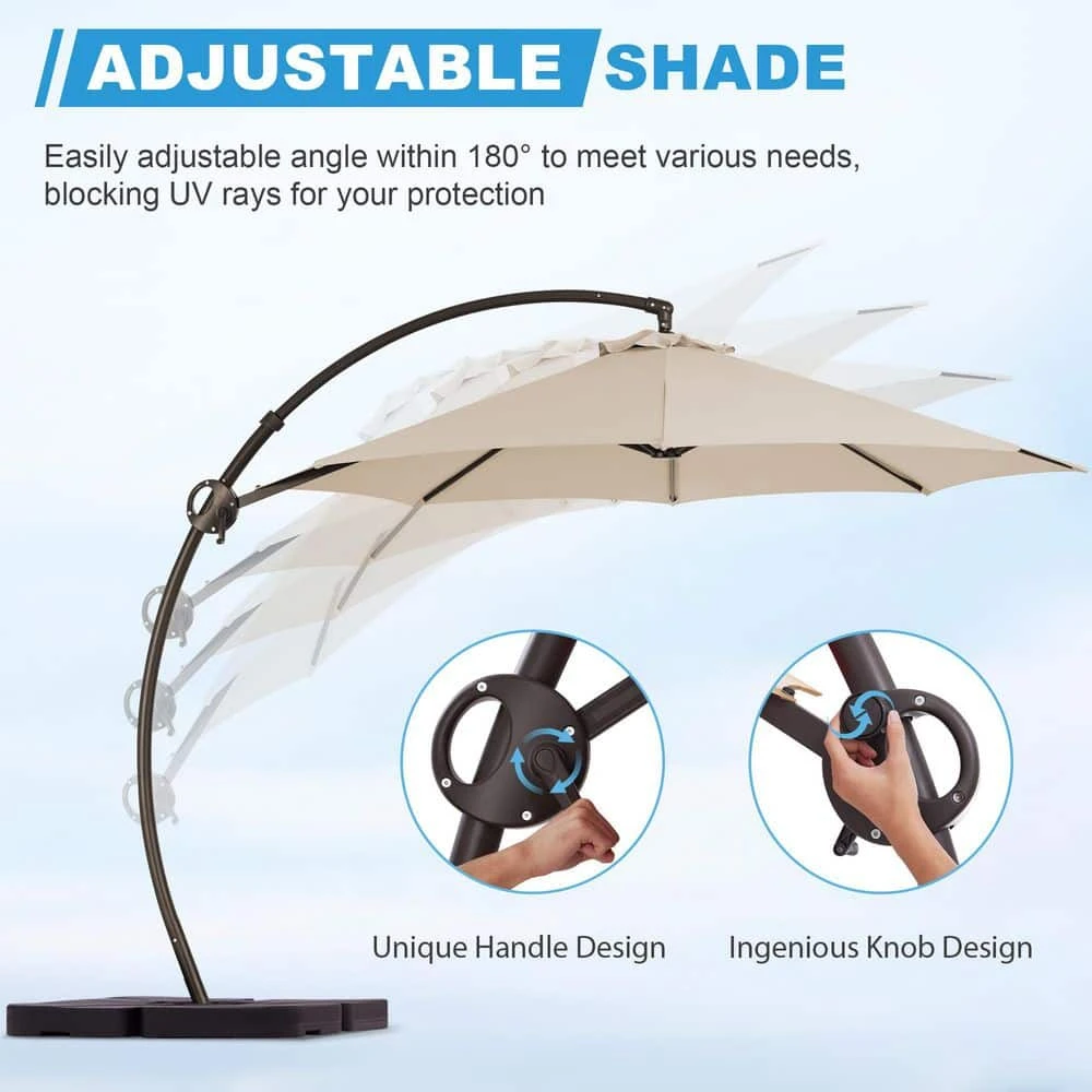 11 Ft. L Outdoor Aluminum Curvy Cantilever Offset Hanging Patio Umbrella With Sandbag Base And Cover In Beige