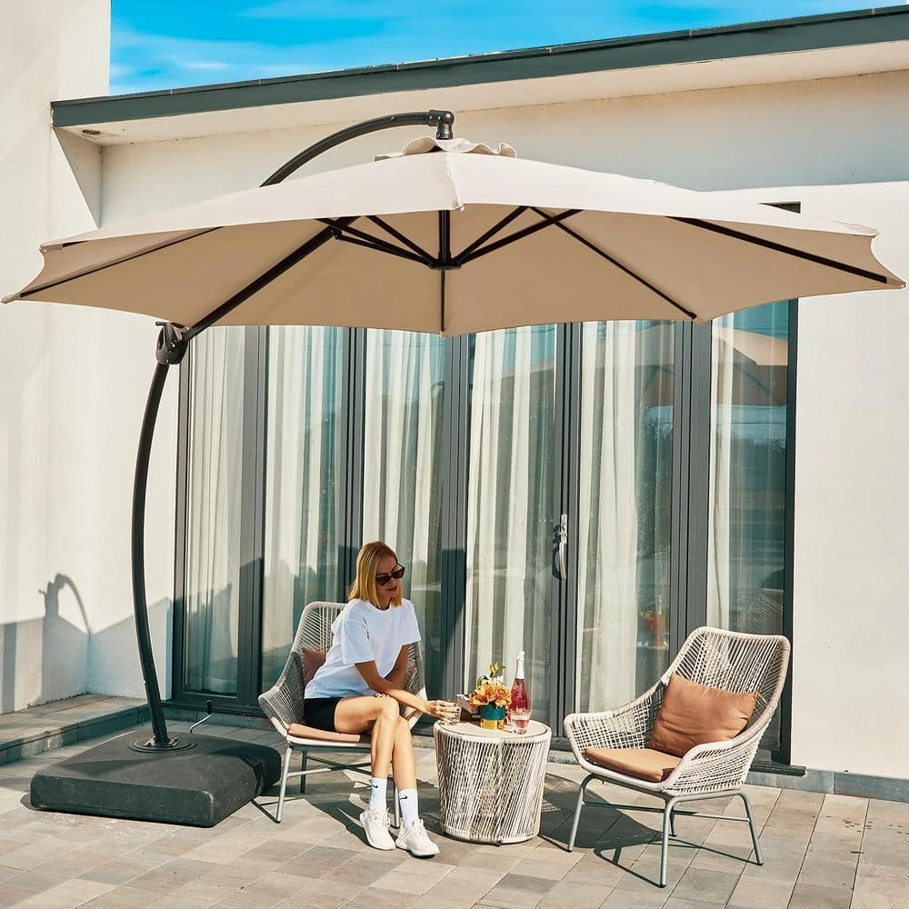 - Durable material- our offset hanging umbrella is made of 240 gsm polyester fiber that is insulated, UV radiation resistant and water resistant, to extend the life of your new patio umbrella, we recommend that you cover and store your sunshade at night or in extreme weather conditions