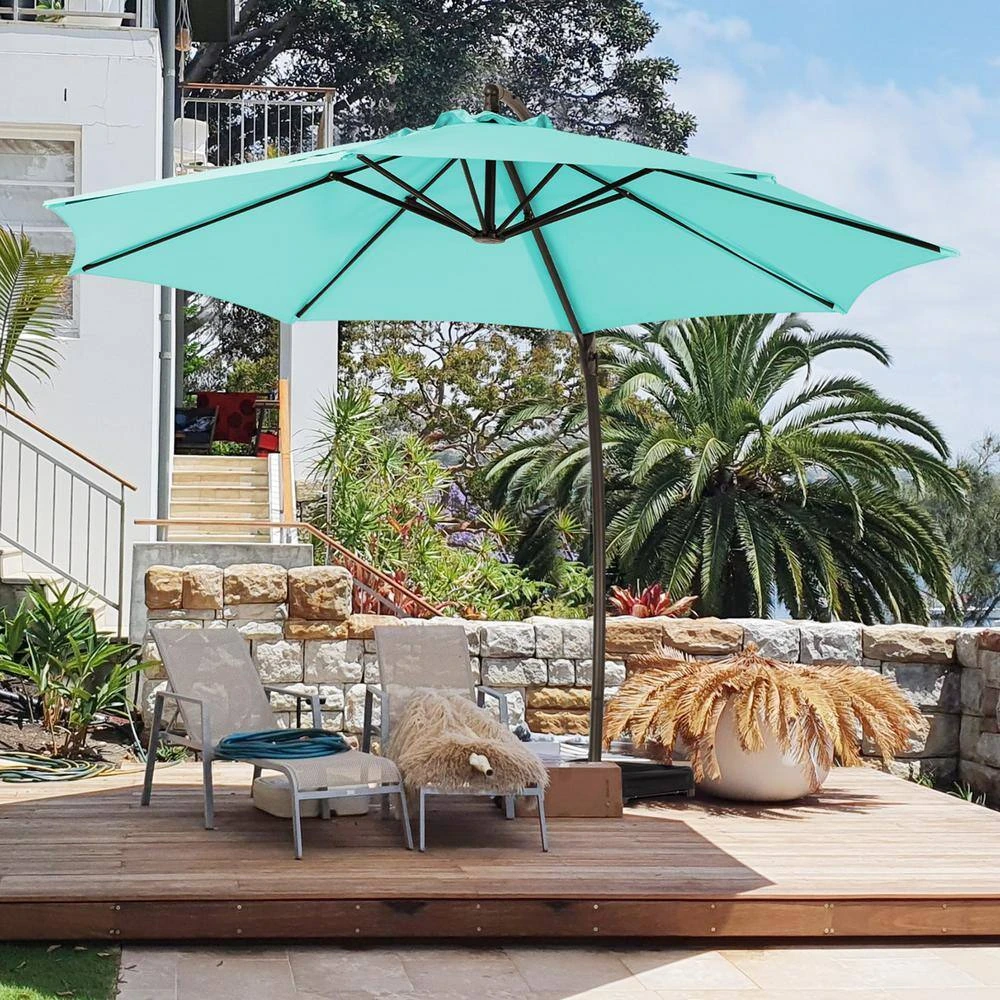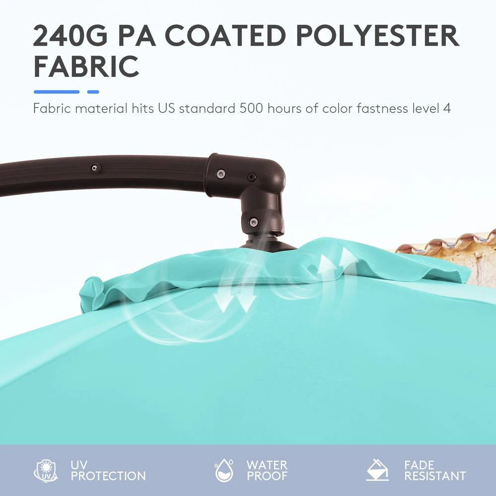 - Durable material- our offset hanging umbrella is made of 240 gsm polyester fiber that is insulated, UV radiation resistant and water resistant, to extend the life of your new patio umbrella, we recommend that you cover and store your sunshade at night or in extreme weather conditions