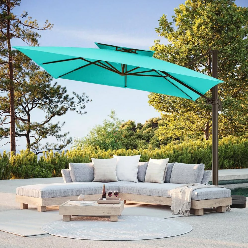 11 Ft. Square Cantilever Umbrella Patio Rotation Outdoor Umbrella With Cover In Peacock Blue