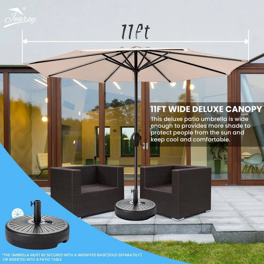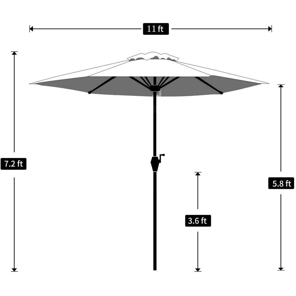 It’s ideal to spend time outdoors, but if you’re looking to minimize sun exposure to keep yourself from sunburn. This 11feet diameter large patio umbrella, featuring heavy-duty fabric is specially designed to keep you cool and comfortable, apply to the yard, square and other places. 11 FT diameter shades your area with at least 6-8 chairs and table, Ideal for both residential and commercial locations.