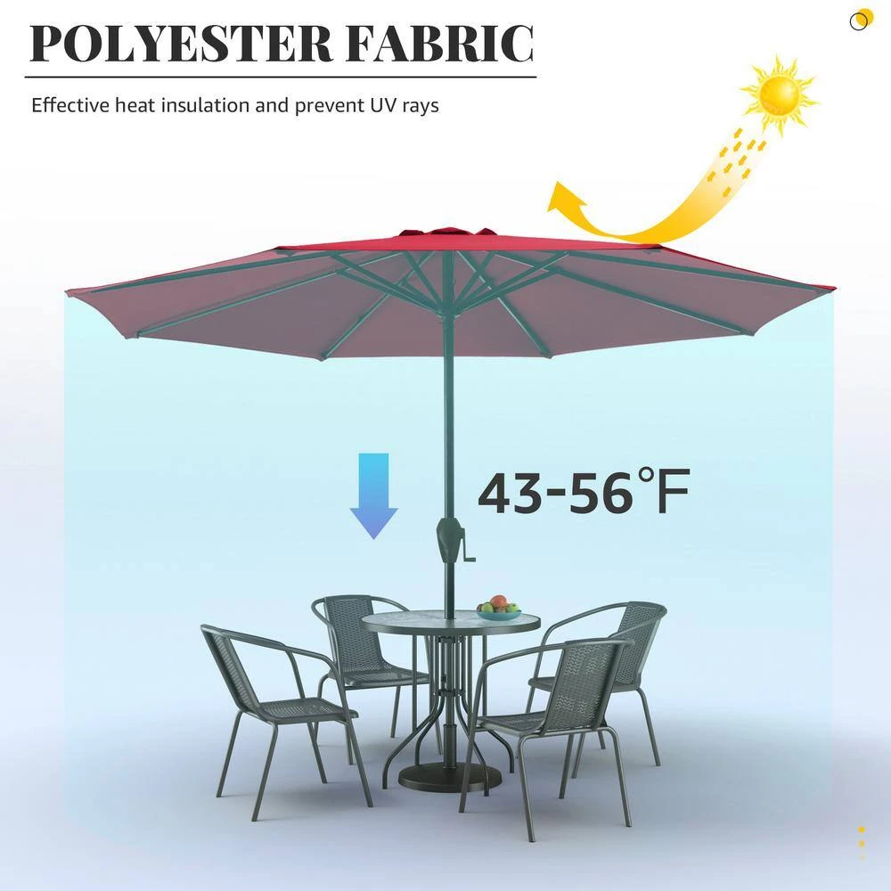 11 Ft. Steel Crank Lift Patio Umbrella In Red