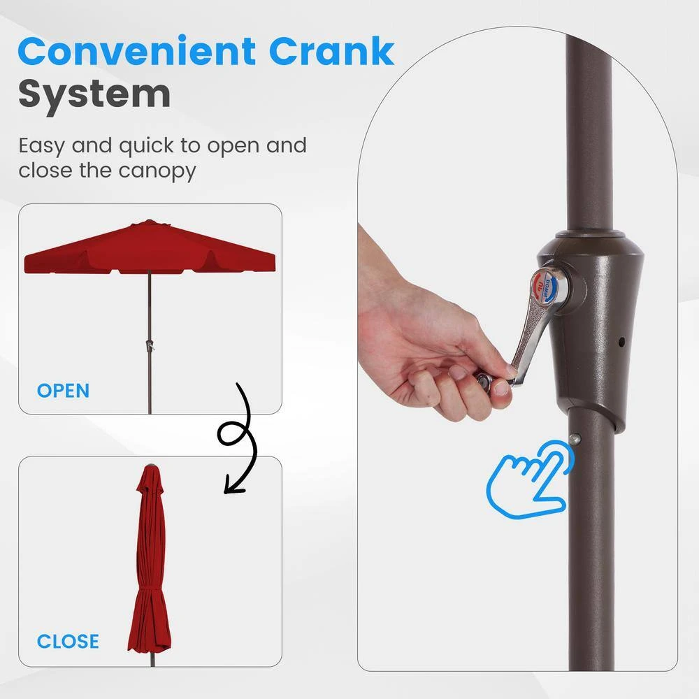11 Ft. Steel Market Crank Outdoor Patio Umbrella In Red
