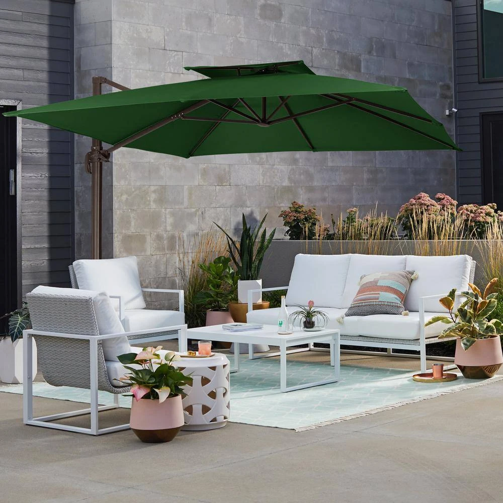 11 Ft. X 11 Ft. Sq. Cantilever Patio Umbrella With Weighted Base In Dark Green