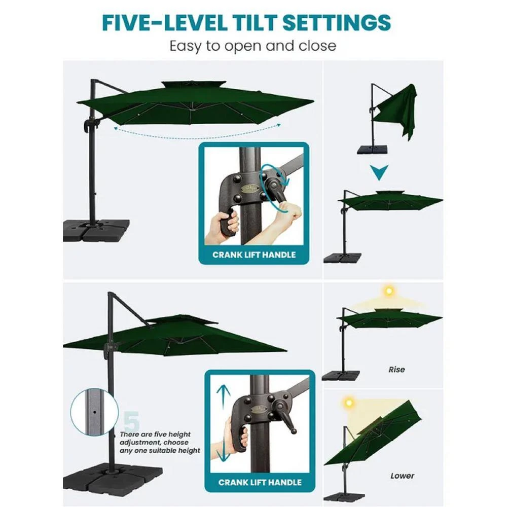 11 Ft. X 11 Ft. Square Two-Tier Top Rotation Outdoor Cantilever Patio Umbrella With Cover In Green