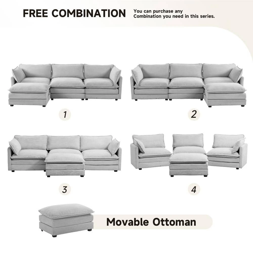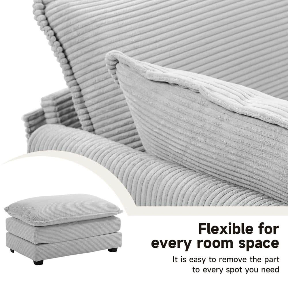 112 In. W 4-Piece Modern Straight Arm Corduroy Fabric L-Shaped Sectional Sofa With Ottoman In Gray