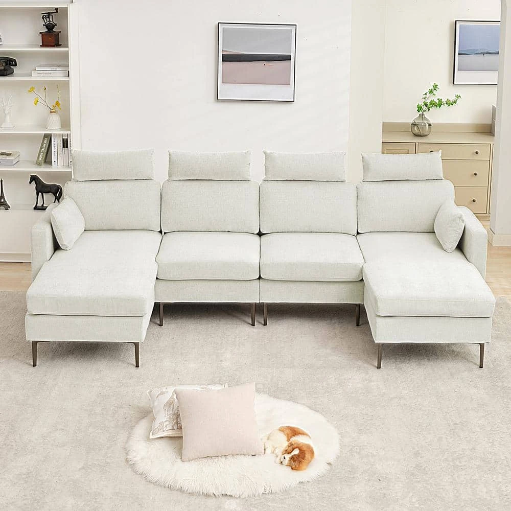 Fall in love with the sofa plus 2 chaise longues for relaxation. This chaise longue can be configured into any shape and space. The sofa is upholstered in a plush, breathable polyester blend in your choice of color. The down-filled cushions are supported by sinuous springs for a plush seating experience. Enjoy this feeling of total relaxation in your home, loft or apartment with this cool combination sofa collection.