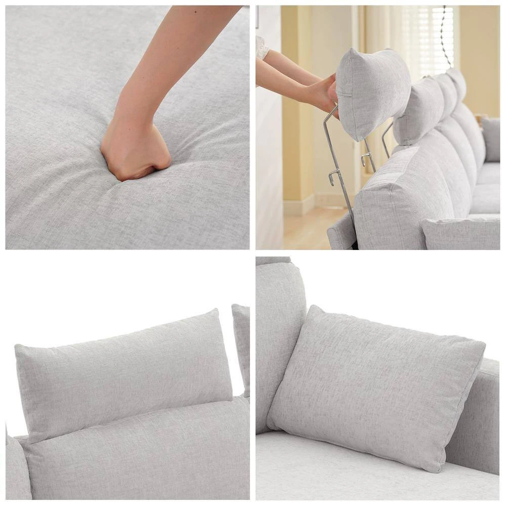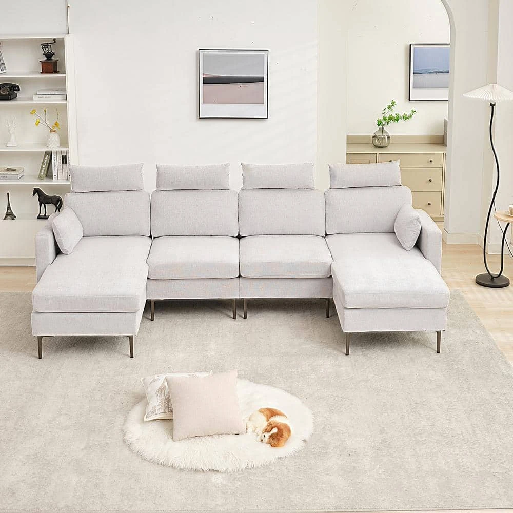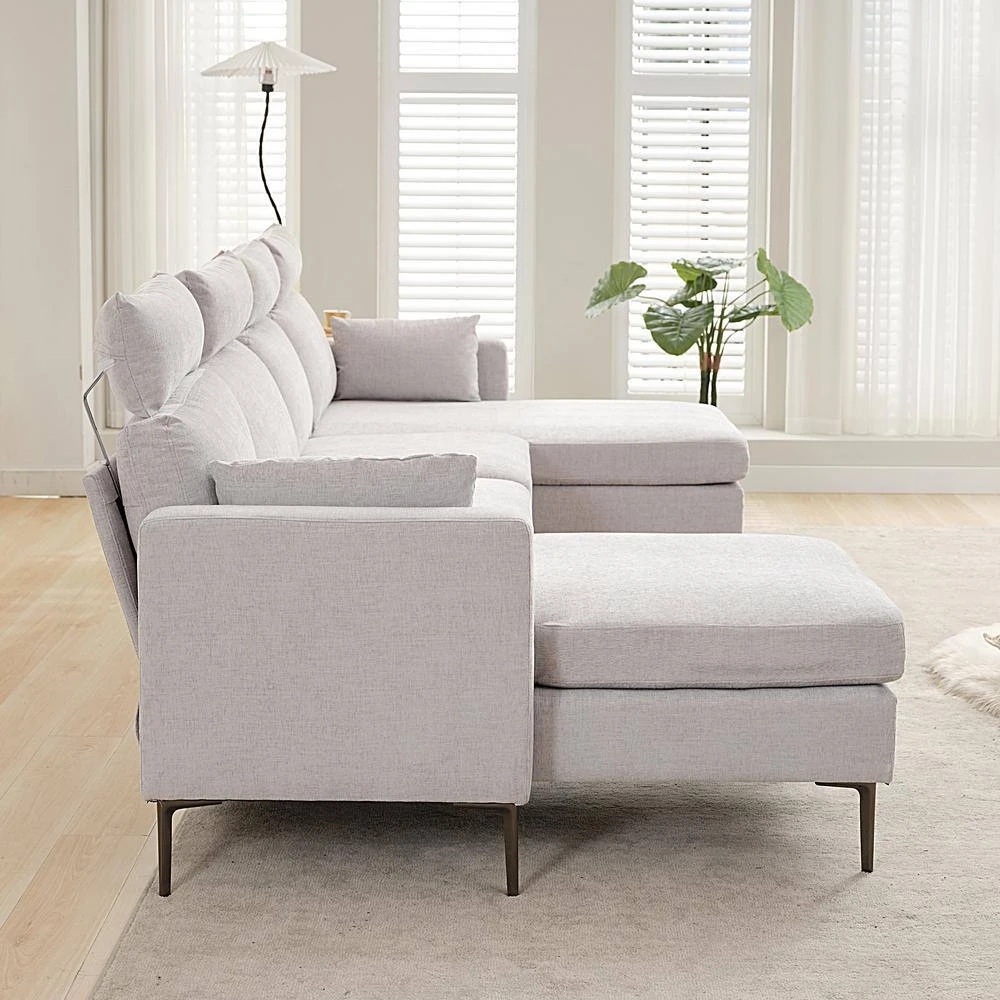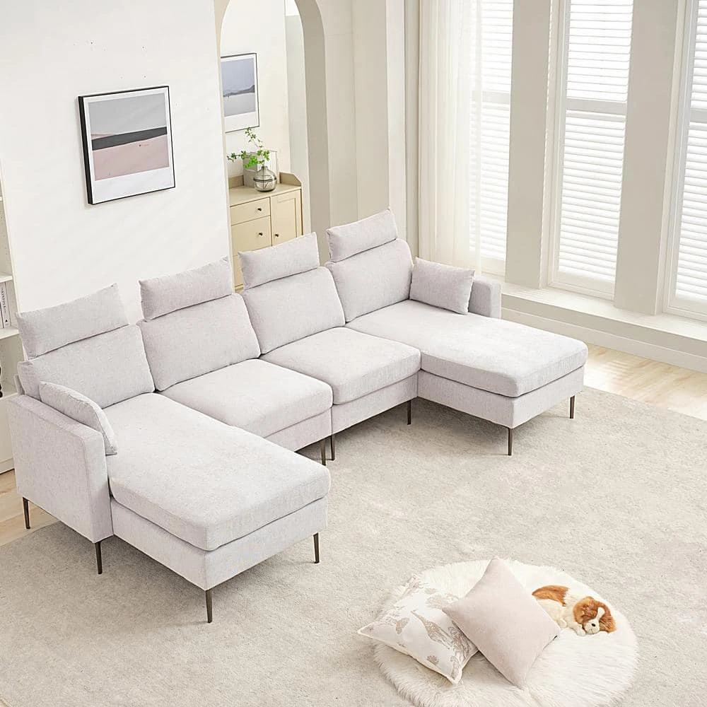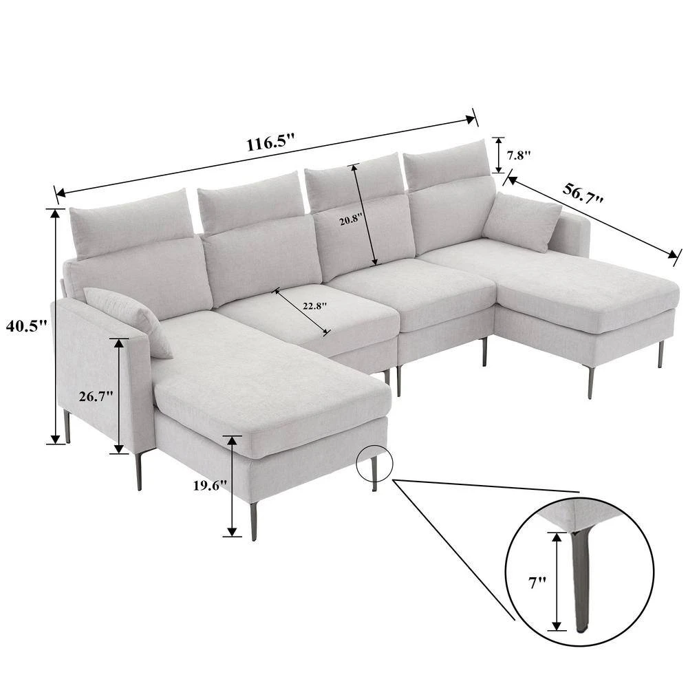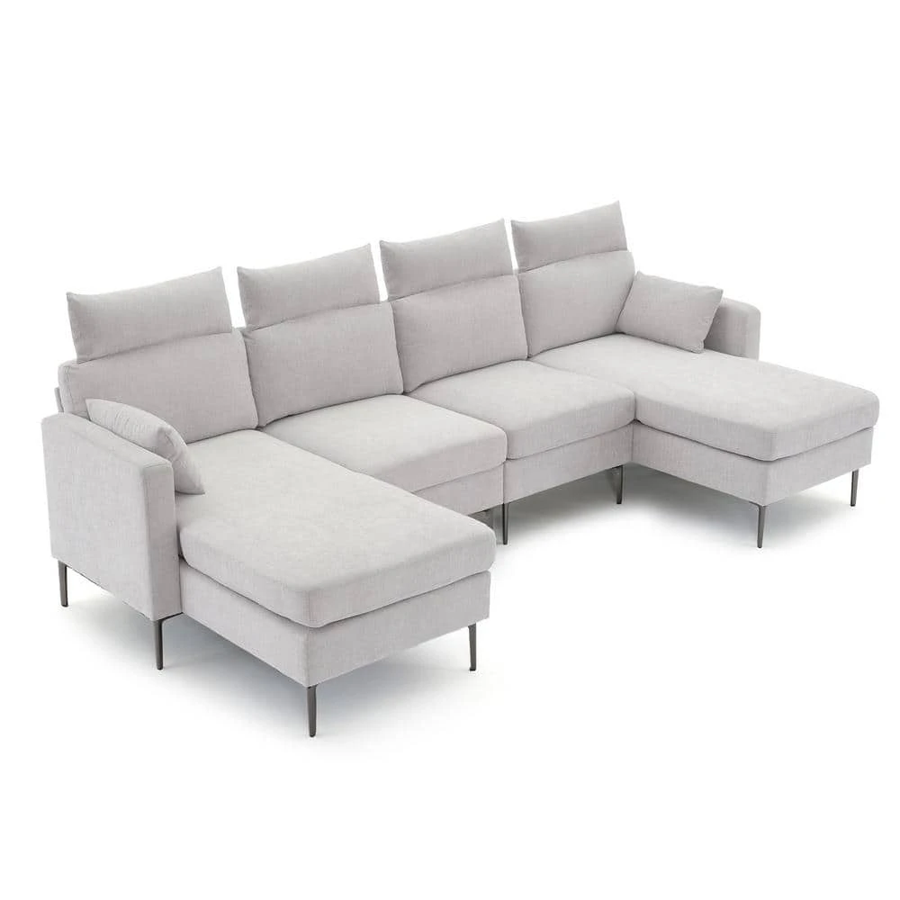 Fall in love with the sofa plus 2 chaise longues for relaxation. This chaise longue can be configured into any shape and space. The sofa is upholstered in a plush, breathable polyester blend in your choice of color. The down-filled cushions are supported by sinuous springs for a plush seating experience. Enjoy this feeling of total relaxation in your home, loft or apartment with this cool combination sofa collection.