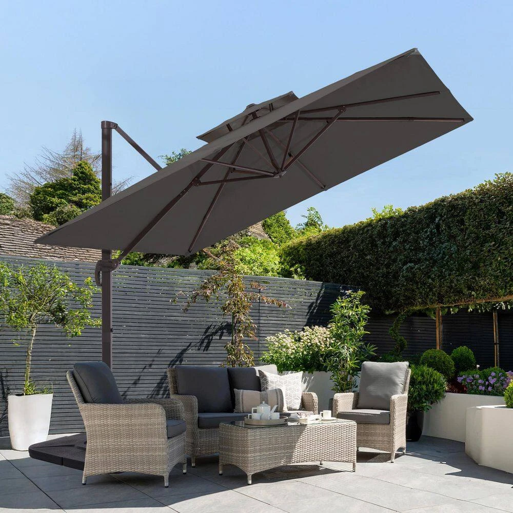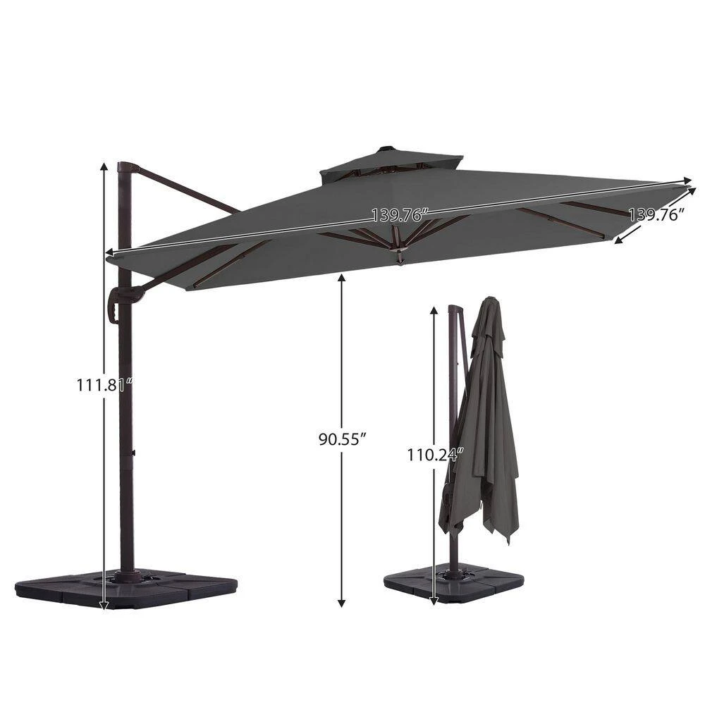 Transform your patio into a luxurious oasis with our 12 ft. x 12 ft. cantilever patio umbrella. Designed to provide expansive shade and versatility, this stunning umbrella is perfect for creating a cozy ambiance in your backyard, poolside, or outdoor dining area. Its aluminum pole and durable fabric ensure durability and style, while the weighted base provides stability and peace of mind.