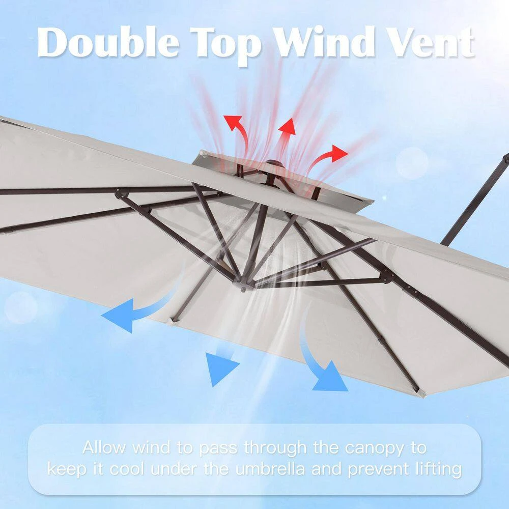 Transform your patio into a luxurious oasis with our 12 ft. x 12 ft. cantilever patio umbrella. Designed to provide expansive shade and versatility, this stunning umbrella is perfect for creating a cozy ambiance in your backyard, poolside, or outdoor dining area. Its aluminum pole and durable fabric ensure durability and style, while the weighted base provides stability and peace of mind.