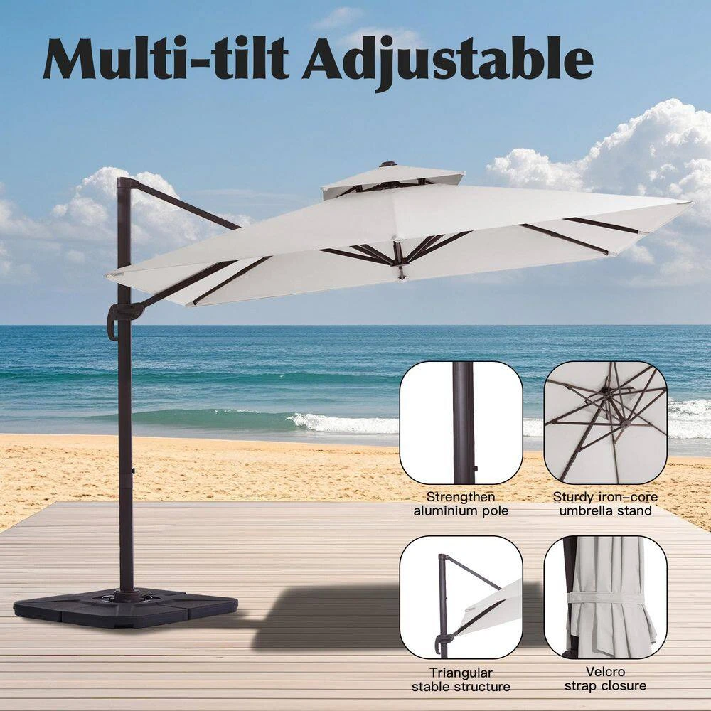 - Rotation and tilt: 360° rotation and adjustable tilt for customizable shade throughout the day