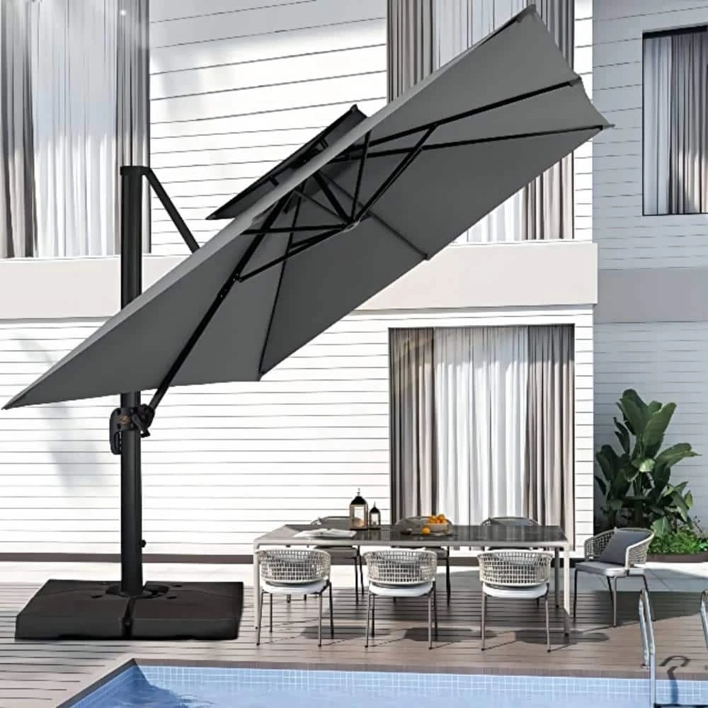 - UMBRELLA COVER INCLUDED – In order to extend service life of your new 2 tier patio umbrella, we customized the patio parasol cover for each outdoor umbrella, we recommend you to cover and store the umbrella at night or during extreme weather conditions