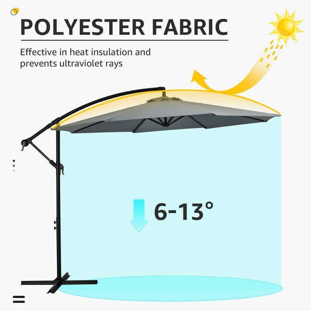 Enhance your outdoor experience with the 120 in. cantilever umbrella. Designed for both style and functionality, this umbrella provides ample shade while enhancing the aesthetic of your patio, garden, or poolside area. The smooth crank lift mechanism ensures effortless opening and closing, while the 120-inch (10-foot) canopy provides comprehensive shade for larger outdoor spaces. Enjoy comfort and style while protecting yourself and your guests from the sun with this exceptional cantilever umbrella. Available in 15 vibrant colors, this umbrella allows you to personalize your outdoor decor.