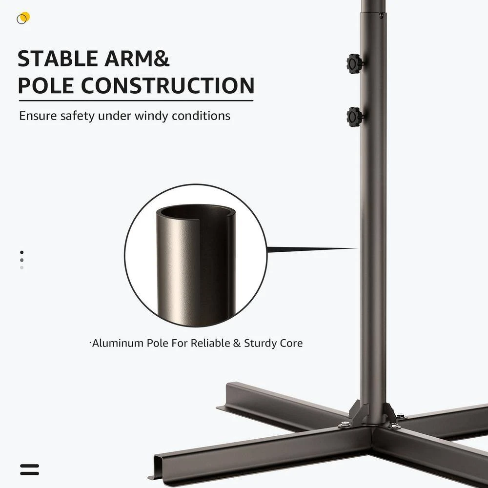 Enhance your outdoor experience with the 120 in. cantilever umbrella. Designed for both style and functionality, this umbrella provides ample shade while enhancing the aesthetic of your patio, garden, or poolside area. The smooth crank lift mechanism ensures effortless opening and closing, while the 120-inch (10-foot) canopy provides comprehensive shade for larger outdoor spaces. Enjoy comfort and style while protecting yourself and your guests from the sun with this exceptional cantilever umbrella. Available in 15 vibrant colors, this umbrella allows you to personalize your outdoor decor.