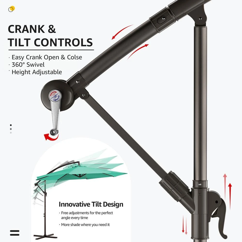 - Easy to control: the crank lift mechanism makes it easy to open and close the umbrella in seconds; free adjustments for the perfect angles to meet your need as the sun runs