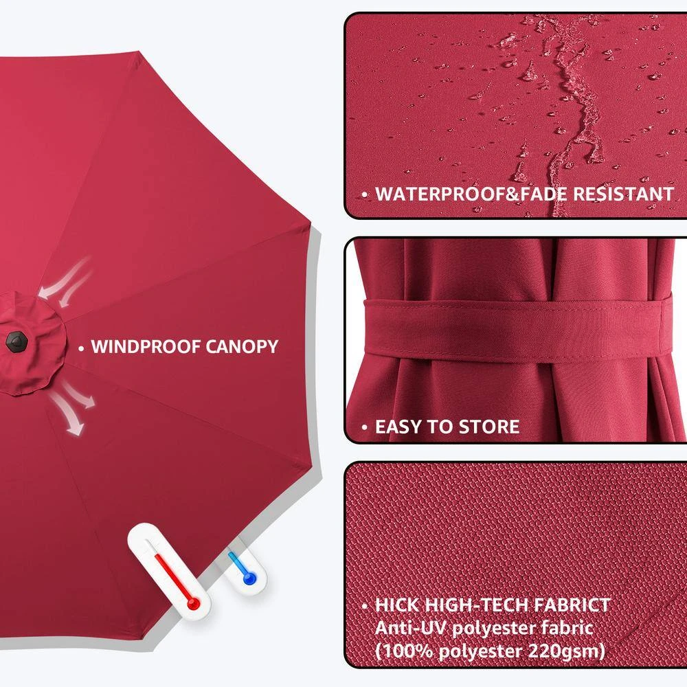 - Premium Fabric: This umbrella canopy is made of high-quality polyester, which is water-resistant and UV-protected for commercial or residential use