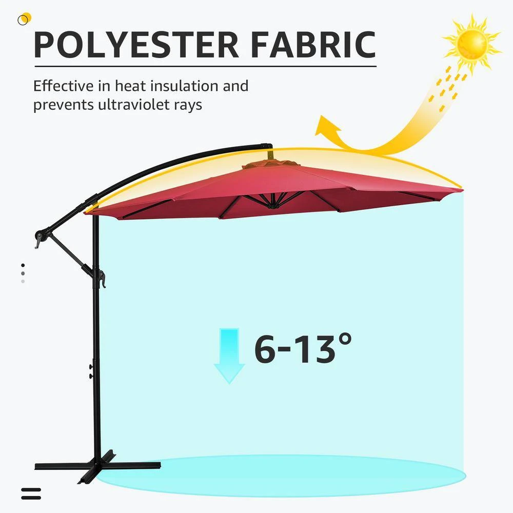 Enhance your outdoor experience with the 120 in. cantilever umbrella. Designed for both style and functionality, this umbrella provides ample shade while enhancing the aesthetic of your patio, garden, or poolside area. The smooth crank lift mechanism ensures effortless opening and closing, while the 120-inch (10-foot) canopy provides comprehensive shade for larger outdoor spaces. Enjoy comfort and style while protecting yourself and your guests from the sun with this exceptional cantilever umbrella. Available in 15 vibrant colors, this umbrella allows you to personalize your outdoor decor.