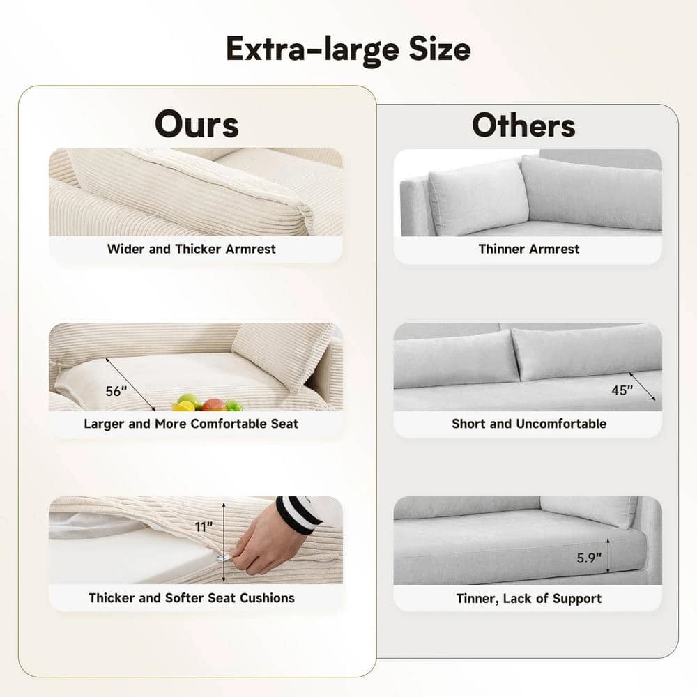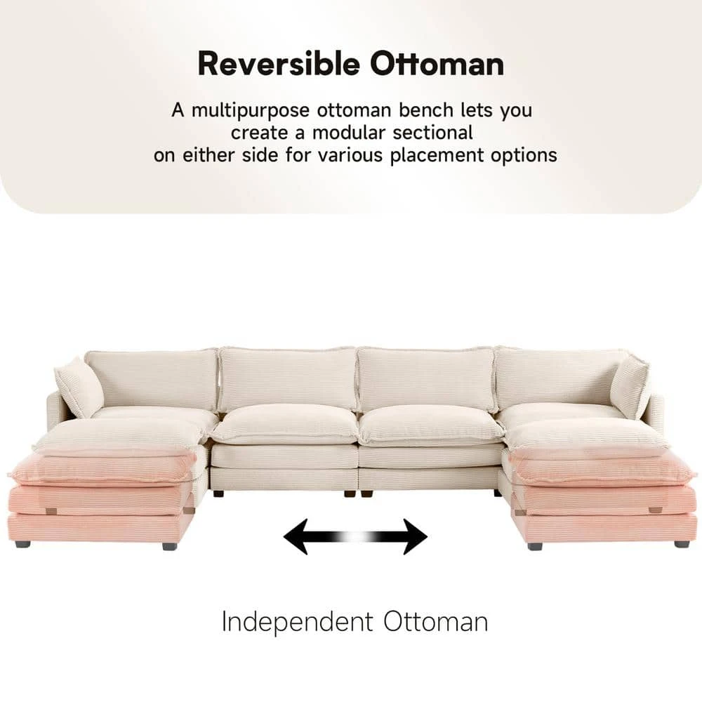 147 In. W 6-Piece Modern Fabric Sectional Sofa With Ottoman In Beige