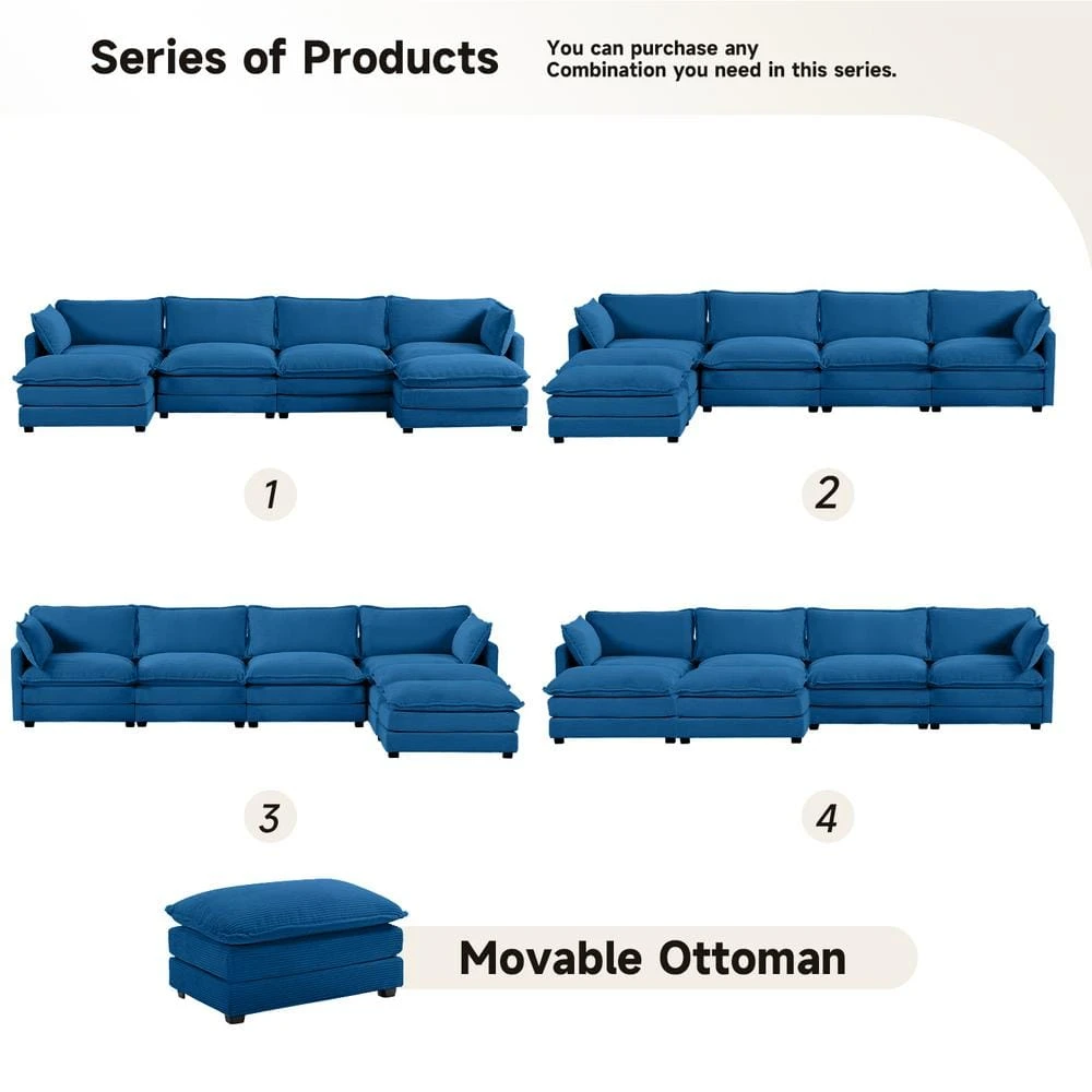 147 In. W 6-Piece Modern Fabric Sectional Sofa With Ottoman In Navy